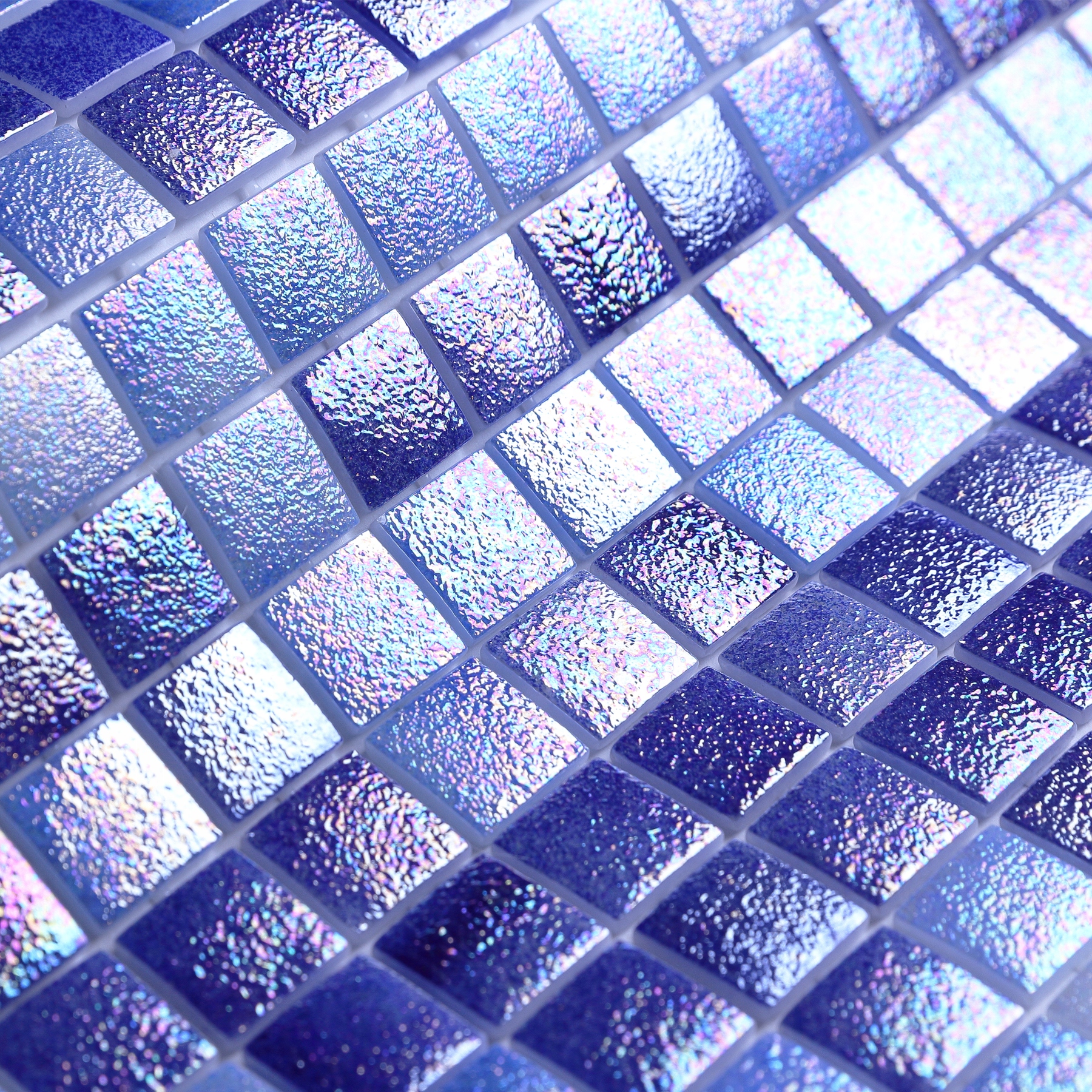 Скляна мозаїка іспанської компанії Hisbalit з колекції Aqualuxe KEROS - це райдужна мозаїчна суміш синіх кубиків.