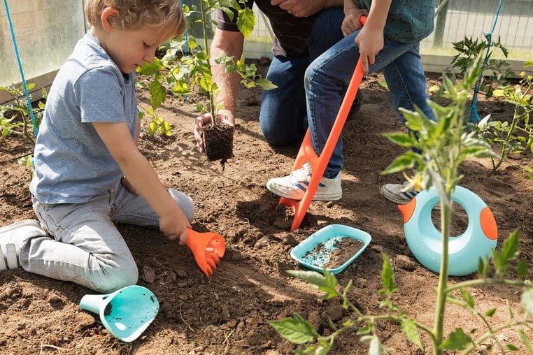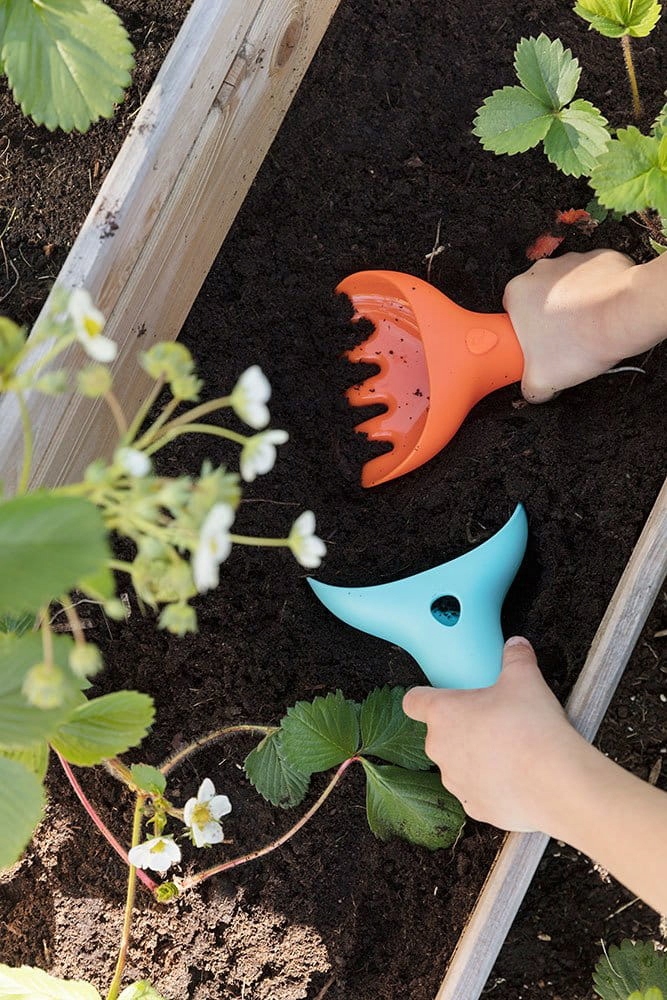 Набір Raki лопата + граблі від бельгійського бренду Quut привертає увагу оригінальним дизайном та оригінальними кольорами.