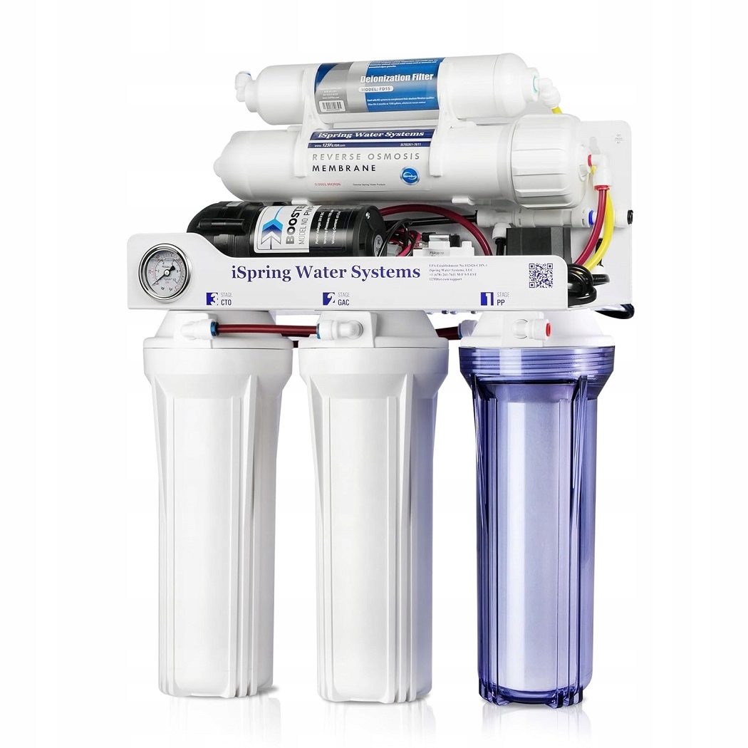 - [0-1 TDS]: 75 GPD, ця система RO/DI оснащена тією самою 5-ступінчастою системою зворотного осмосу, що й RCC7, а також спеціально виготовленим фільтром DI, який використовує процес, який називається деіонізація, завдяки якому вода навіть чистіша, ніж дистильована вода.