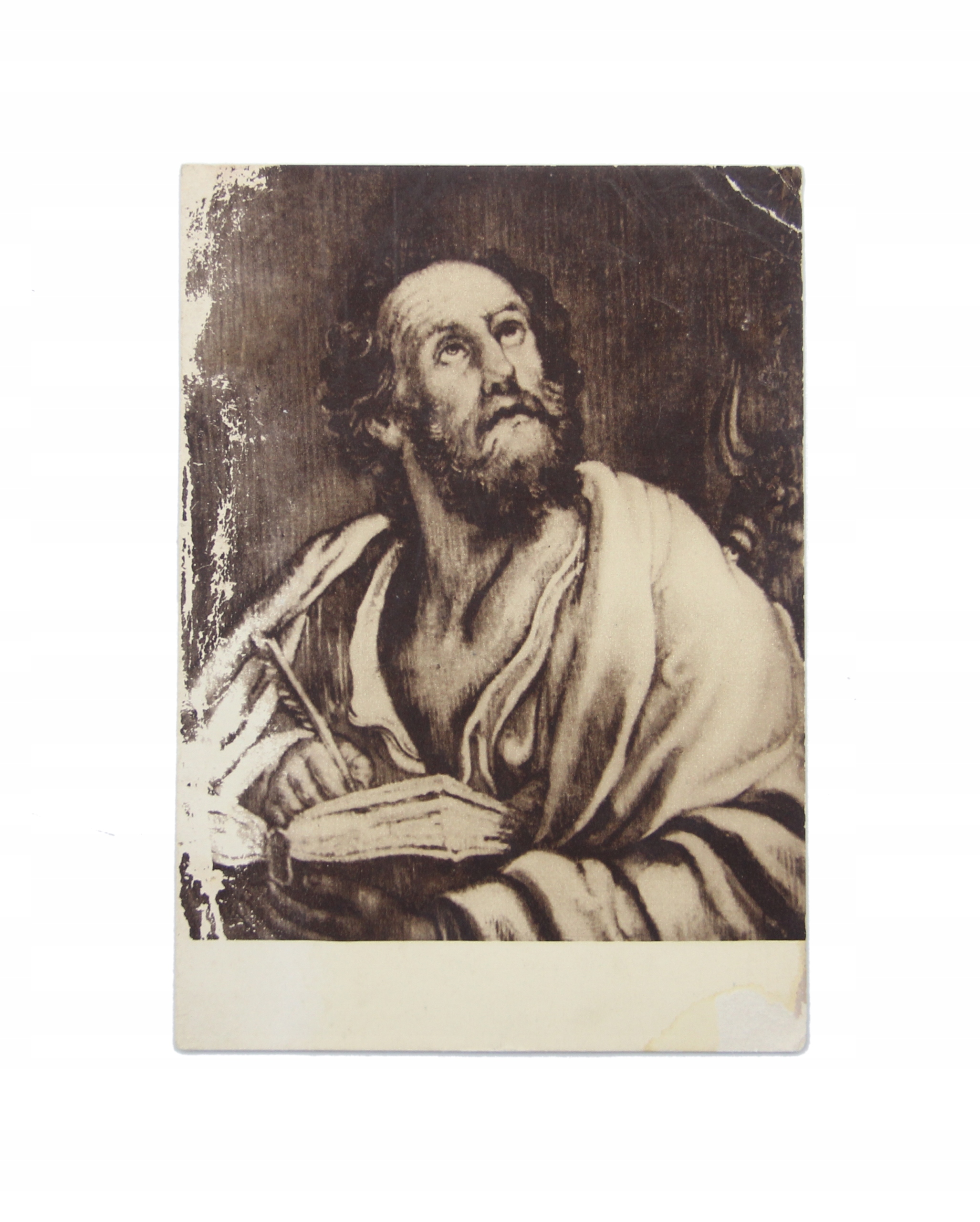 Листівка з копією гобелена із зображенням святого Луки з катедри в Перемишлі, виконана М. Строньським. Сліди використання. Друкований одяг. Розміри: 14,5 х 10,5 см. Рекомендую колекціонерам