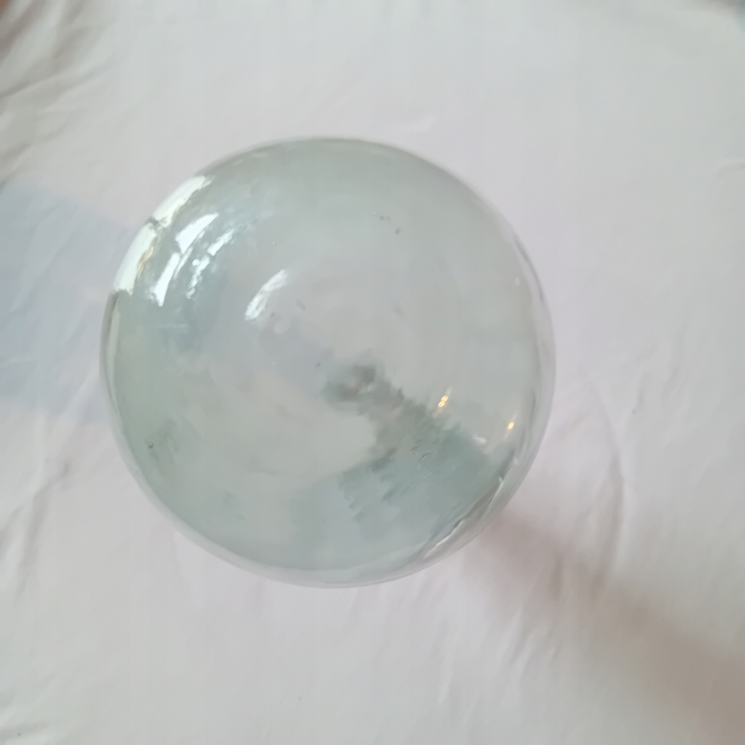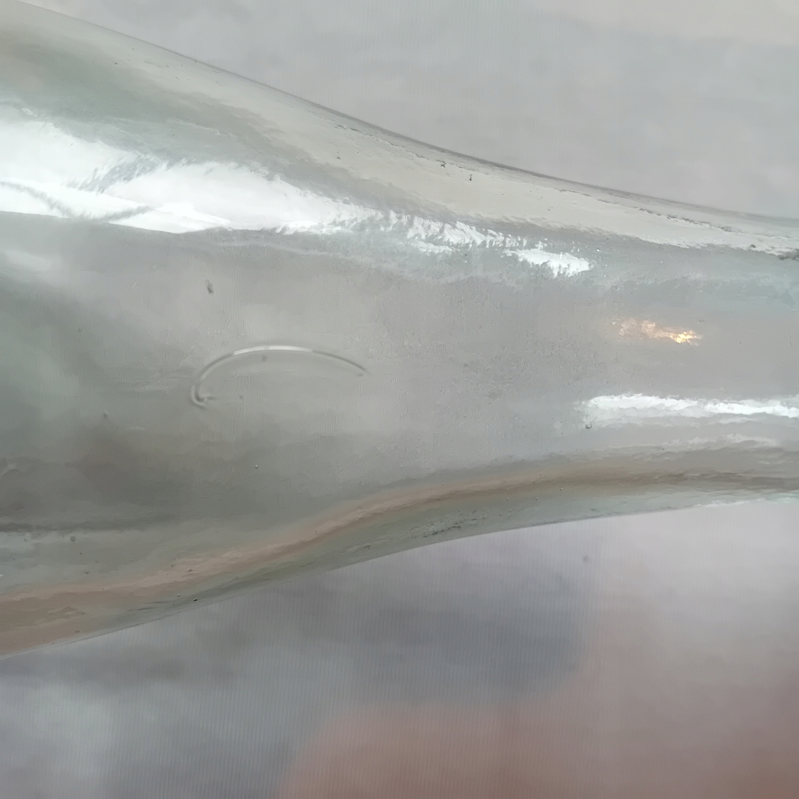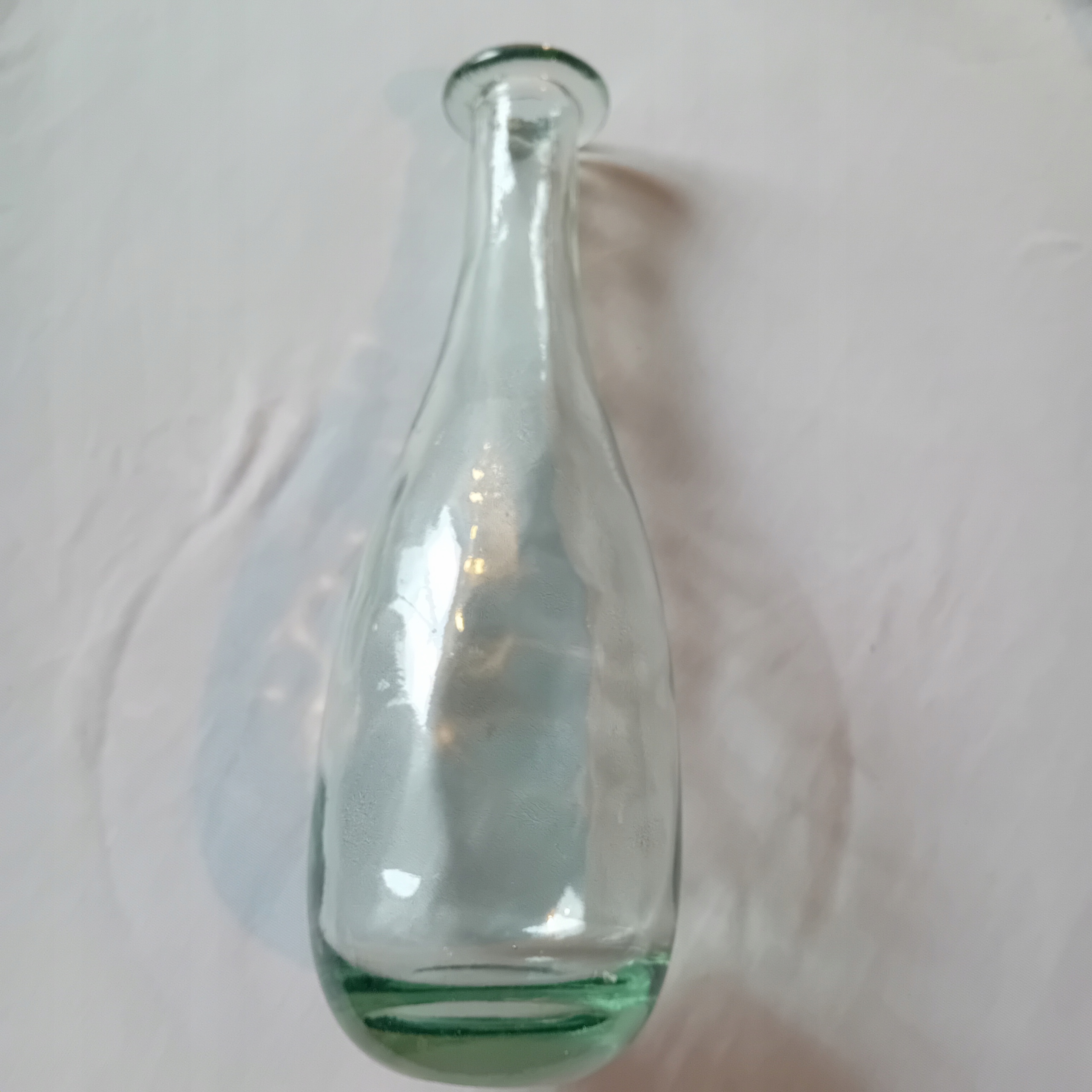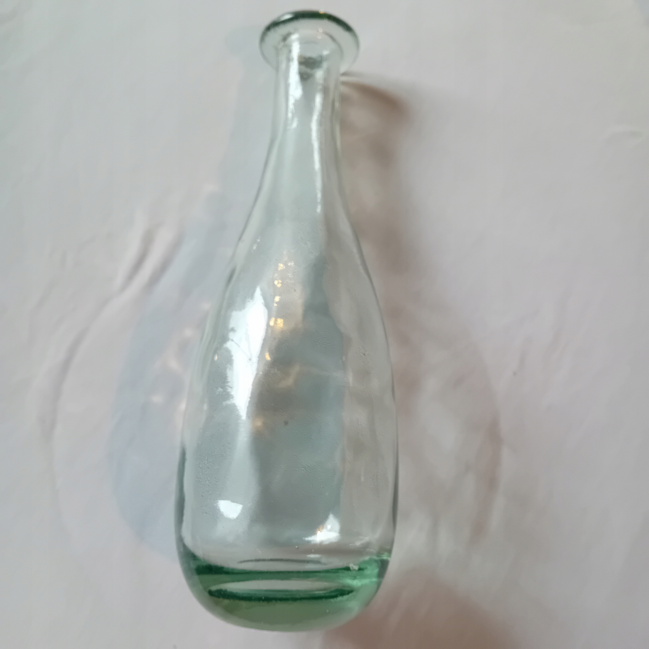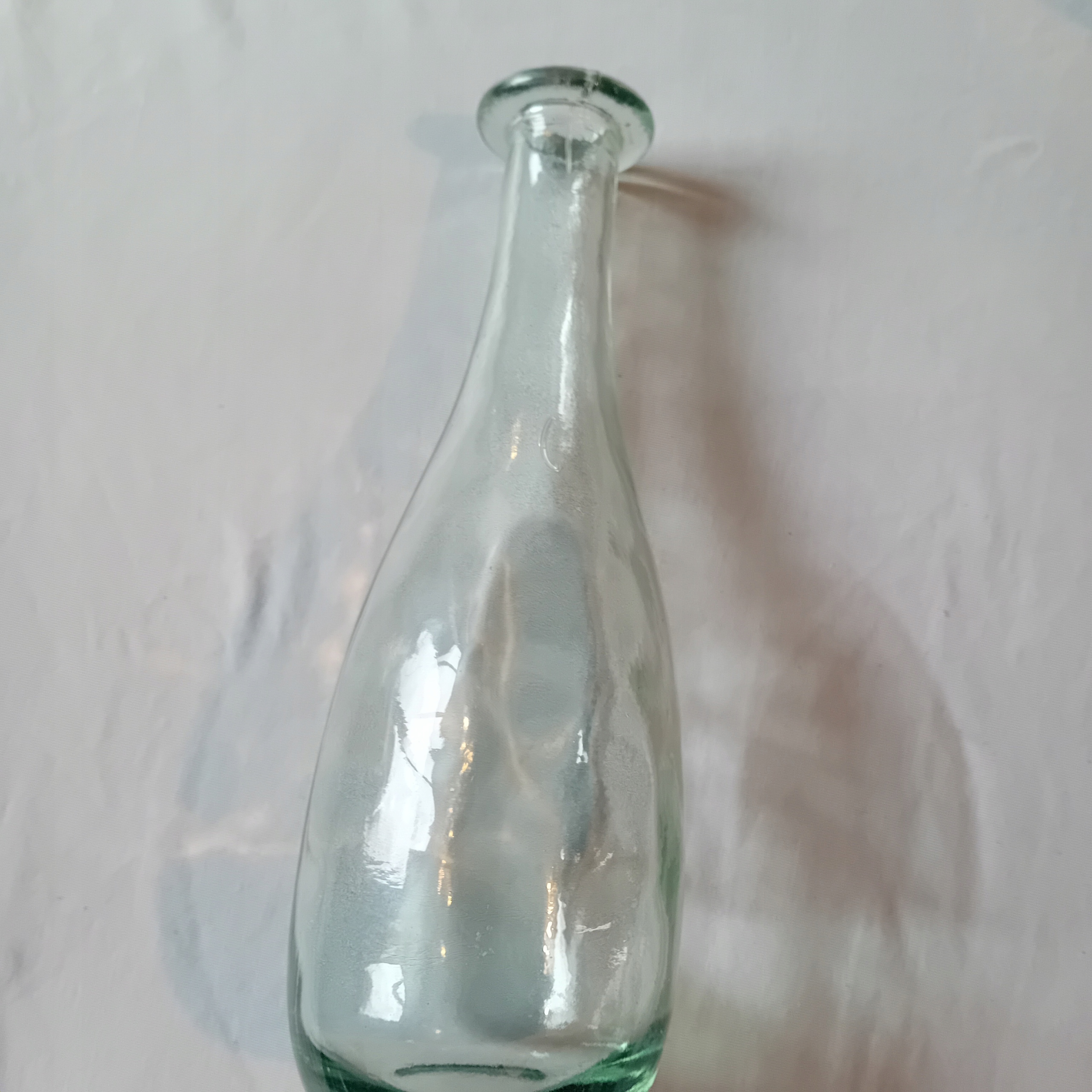 Я пропоную на продаж цікавий караф, виготовлений з густого, злегка зеленого скла. Скляний відтінок, схожий на старі алкогольні пляшки. . Об'єкт має густе "задимлене" дно, з нерегулярною товщиною, в середньому близько 2 см. Поверхня зовні гладка, але від дна до звуження видно цікавий оптичний малюнок, залежно від кута виду, що створює враження стільникових клітин або світла на поверхні води. На вершині комір шириною 1,5 см. Висота 27,5 див. Діаметр файлу 5 см. (всередині 2,5 см). Діаметр ДНК 5 см. , в найширшому місці 8,7 см. Старий карафе, оптичний малюнок, що використовується, характерний для окулярів з кінця ХІХ століття