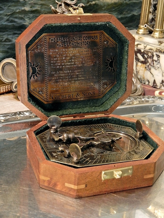 Запрошую придбати виключно оригінальну річ. Це сонячний годинник з компасом і схилом. Схил використовується для вирівнювання платформи за допомогою компаса. Це надзвичайно гарна копія пристрою Gilbert & sons.