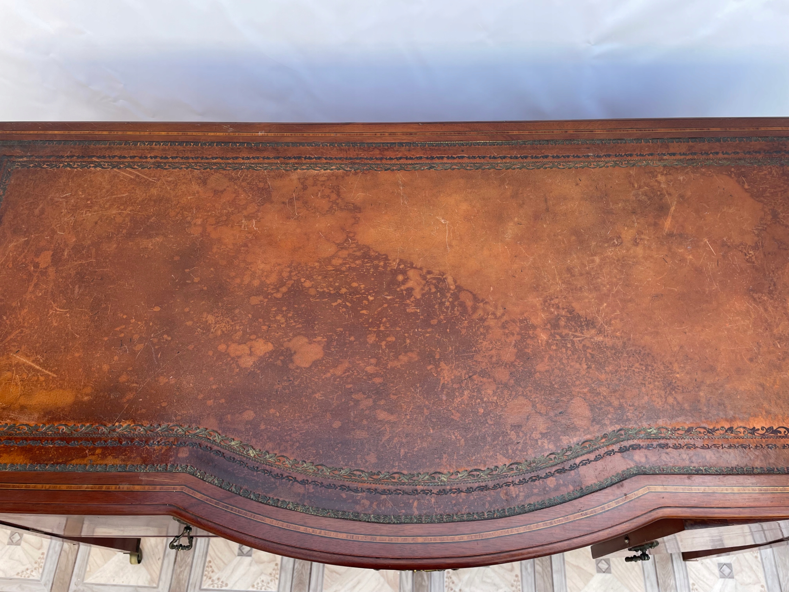 Історичний стіл, виготовлений з твердої деревини з червоним деревом з шкіряною природною дев'ятнадцятою століттям