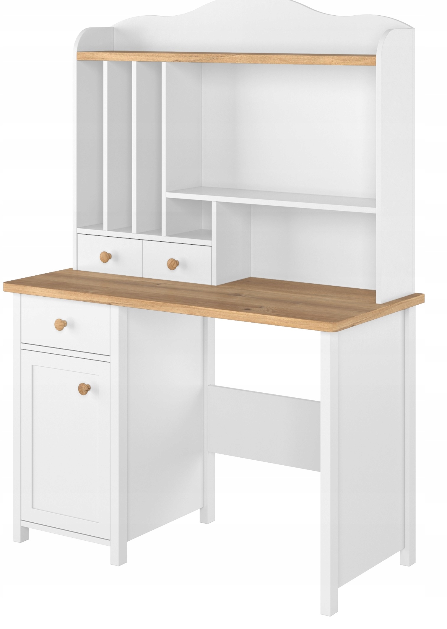 пробити над столом з функціональними поличками та ящиками. Він буде організувати простір навколо столу простим і естетичним способом. Меблі виготовлені з довговічної ламінованої тарілки, закінченої міцним краєм ABS. Пластикові ручки.