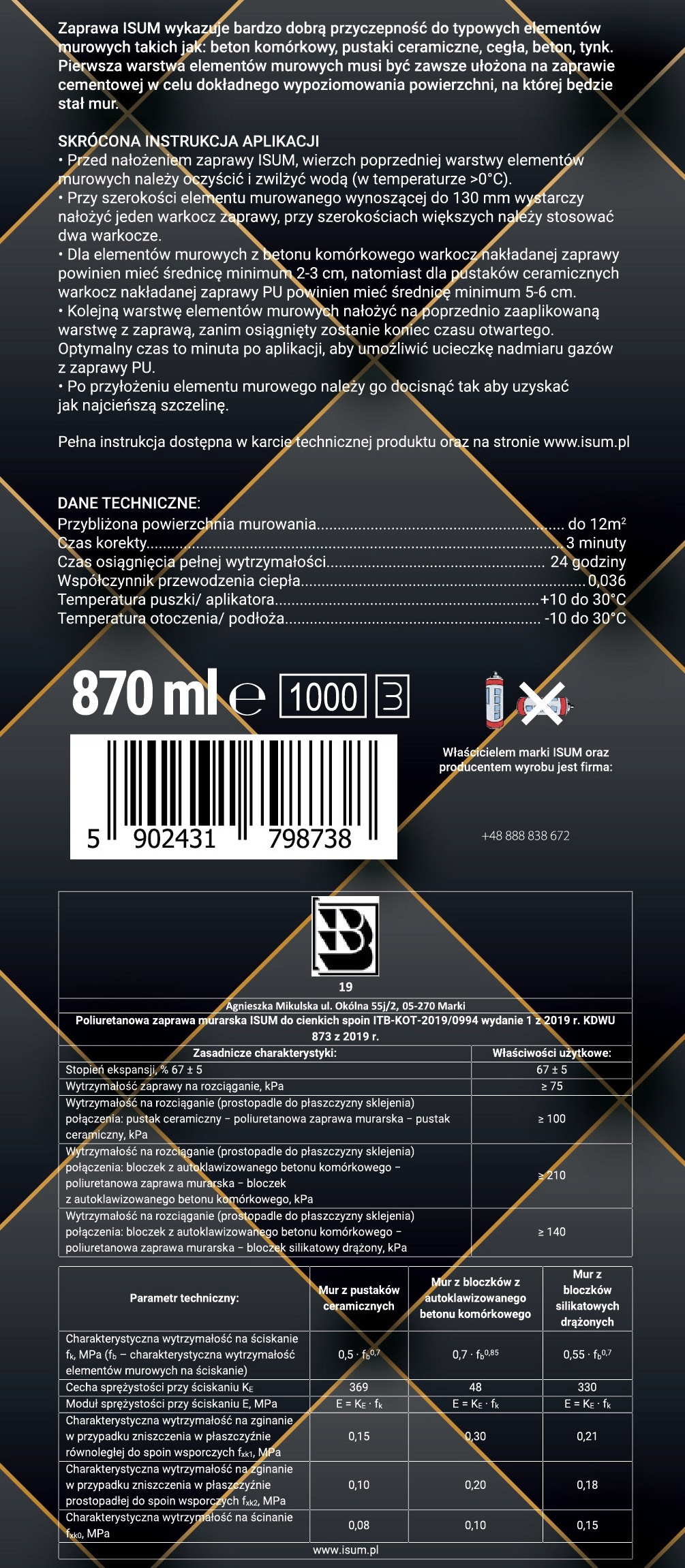 Просматривая «isum КЛЕЙКИЙ ПЕННЫЙ РАСТВОР для СУХОЙ кладки кирпича», вы можете быть уверены, что данный товар из каталога «Другие клеи» будет доставлен из Польши и проверен на целостность. В цене товара, указанной на сайте, учтена доставка из Польши. Внимание!!! Товары для Евросоюза, согласно законодательству стран Евросоюза, могут отличаться упаковкой или наполнением.