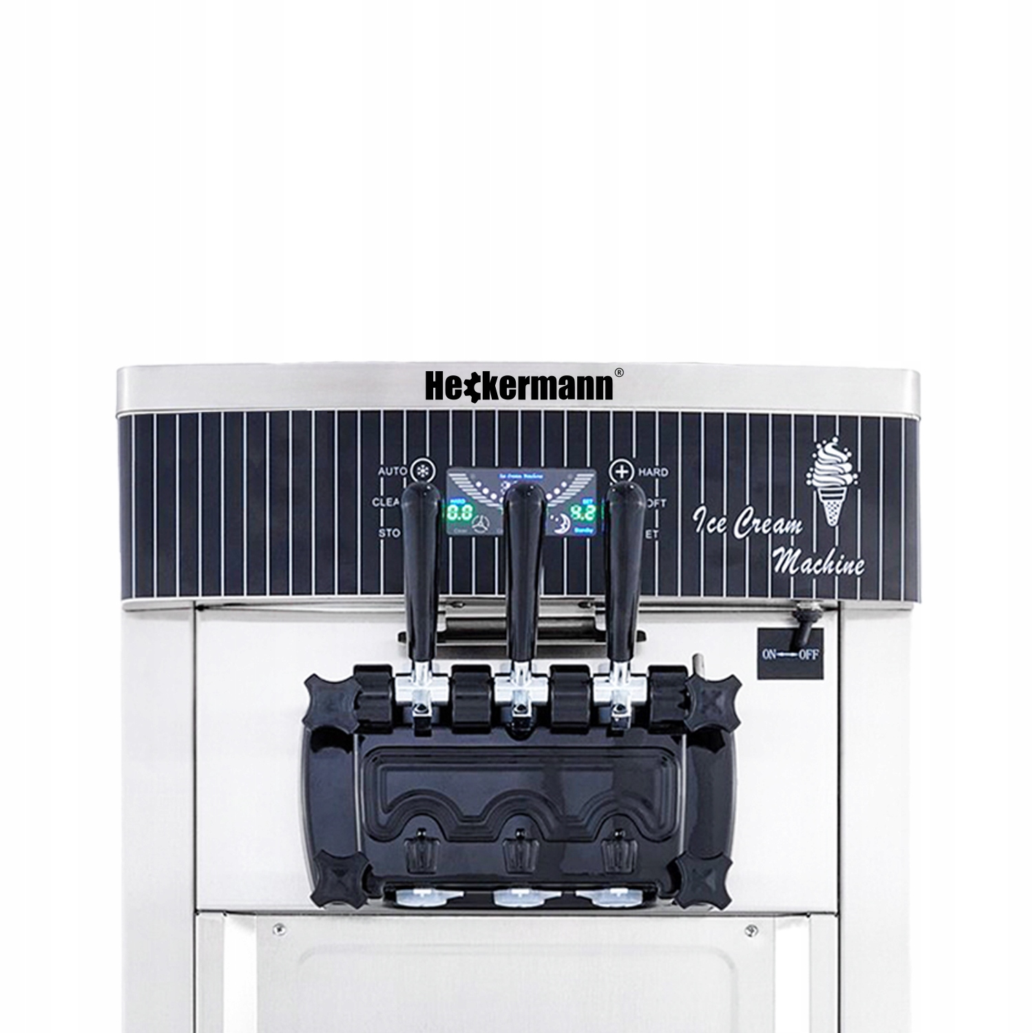 Машина Heckermann 8228T буде працювати там, де підраховується швидка та надійна виробництво морозива. Завдяки чотирма змінними форсунками ви можете здивувати клієнтів різноманітним виглядом десертів.
