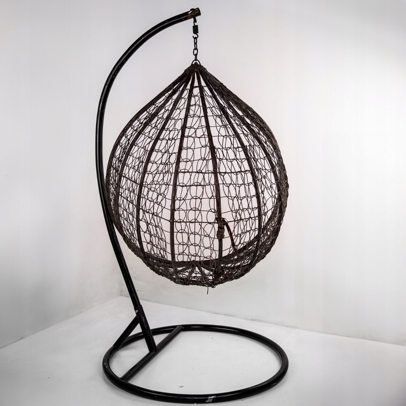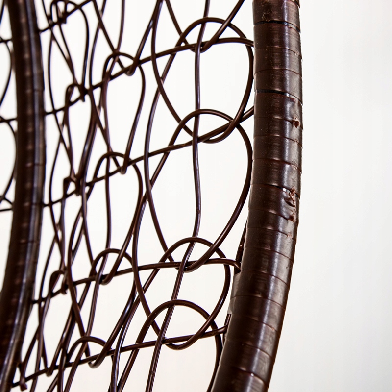 Велике, коричневе підвісне крісло, виготовлене з високоякісних технологій (природна імітація плетених), забезпечить вам чудовий комфорт та розслаблення вдома, на терасі, на терасі або в саду. У кріслі є суцільна металева рама, загорнута плетеною, що збільшує його силу, стабілізацію та дає цікаву конструкцію. Модель крісла Velaco у вигляді так -зведеного кокона унікальна через сучасний і елегантний вигляд, круглу, стійку основу та сталеву рамку, заповнену порошком. Пластик, з якого зроблено крісло, стійкий до погодних умов. Велика кругла основа забезпечує максимальну стабільність, а вага всього набору - близько 40 кг.