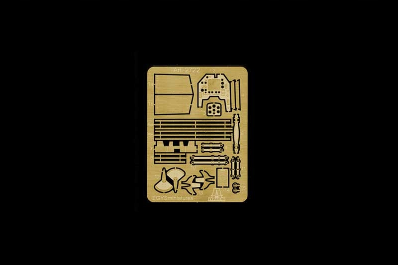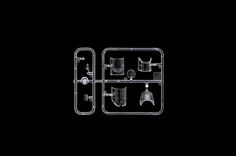 Коробка містить пластикові деталі, деталі з фототравленням, наклейки на водній основі та докладні інструкції зі збирання.