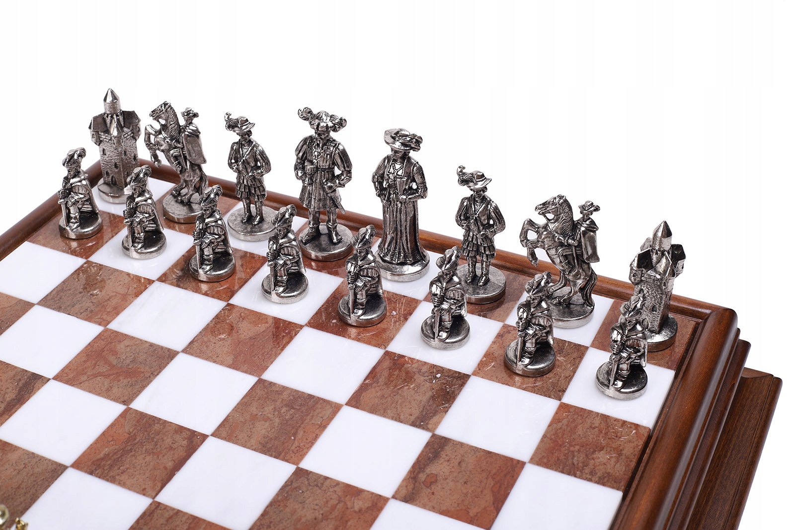 ITALIAN CHESS LANDSKNECHT+CHESS BOARD MARBLE/TILIA WOOD 46 WITH DRAWER