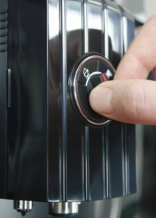 - Машина оснащена модулем свіжого молока зі зручною ручкою для налаштування параметрів спінювання молока