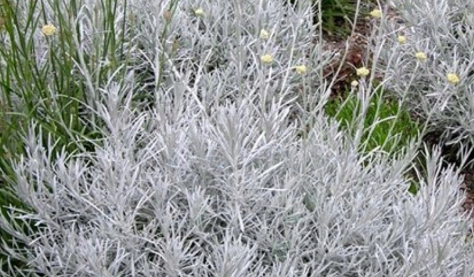 італійська коканка 'високий каррі' (Helichrysum angustifolia). Він походить із Середземноморського моря. Він має протизапальний та фунгіцидний ефект. Він росте до приблизно 0,5 м.