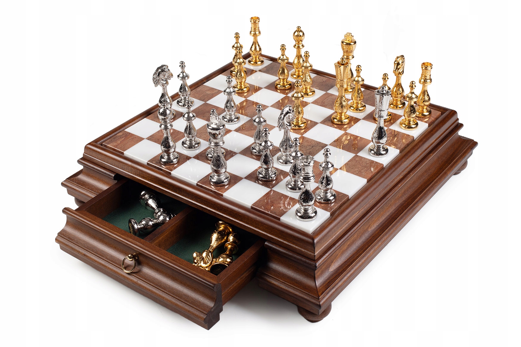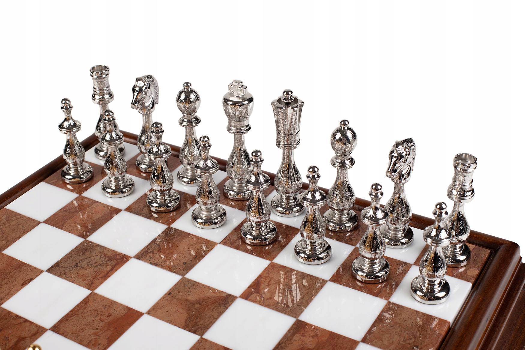 італійська шахова арабеска золота/срібло+шахова дошка Мармур/деревина 46 з ящиком