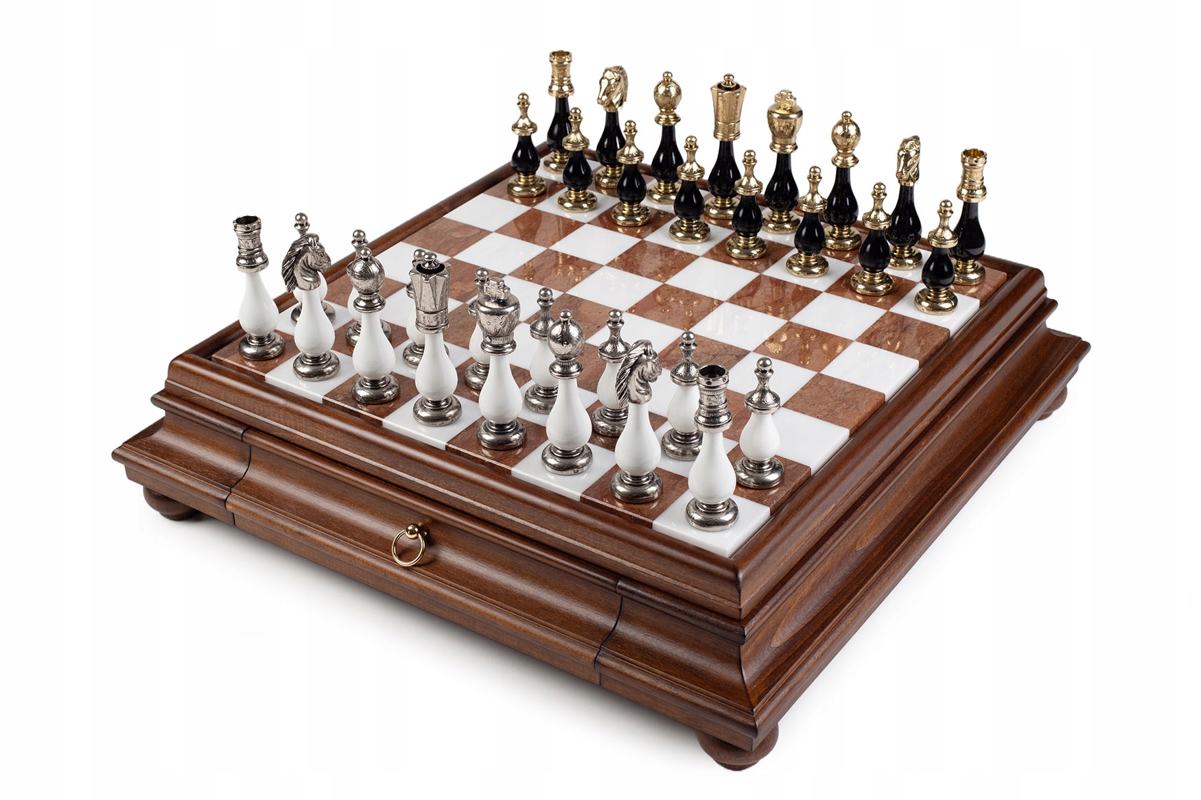 італійська шахова деревина біла/чорна+шахова дошка Мармур/деревина 46 з ящиком