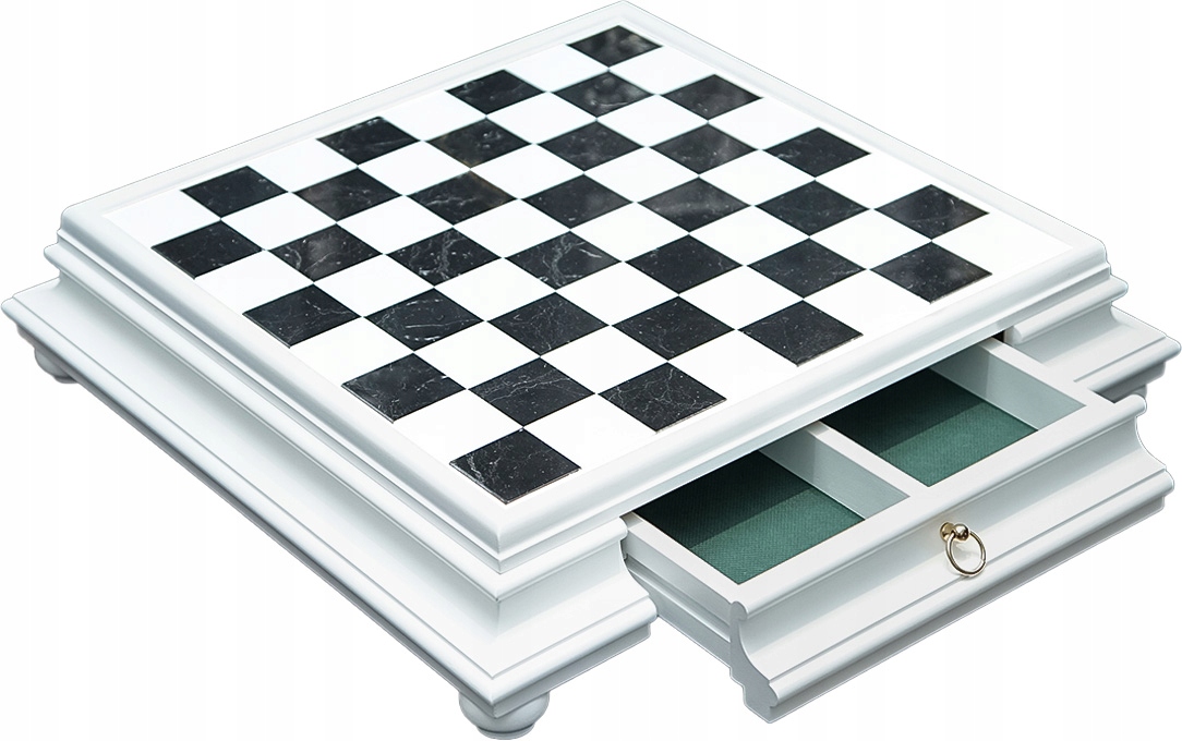 ІТАЛІЙСЬКА ШАХОВА ДОШКА МАРМУР/ТИЛІЯ ВУД БІЛА 46 З ЯЩИКОМ