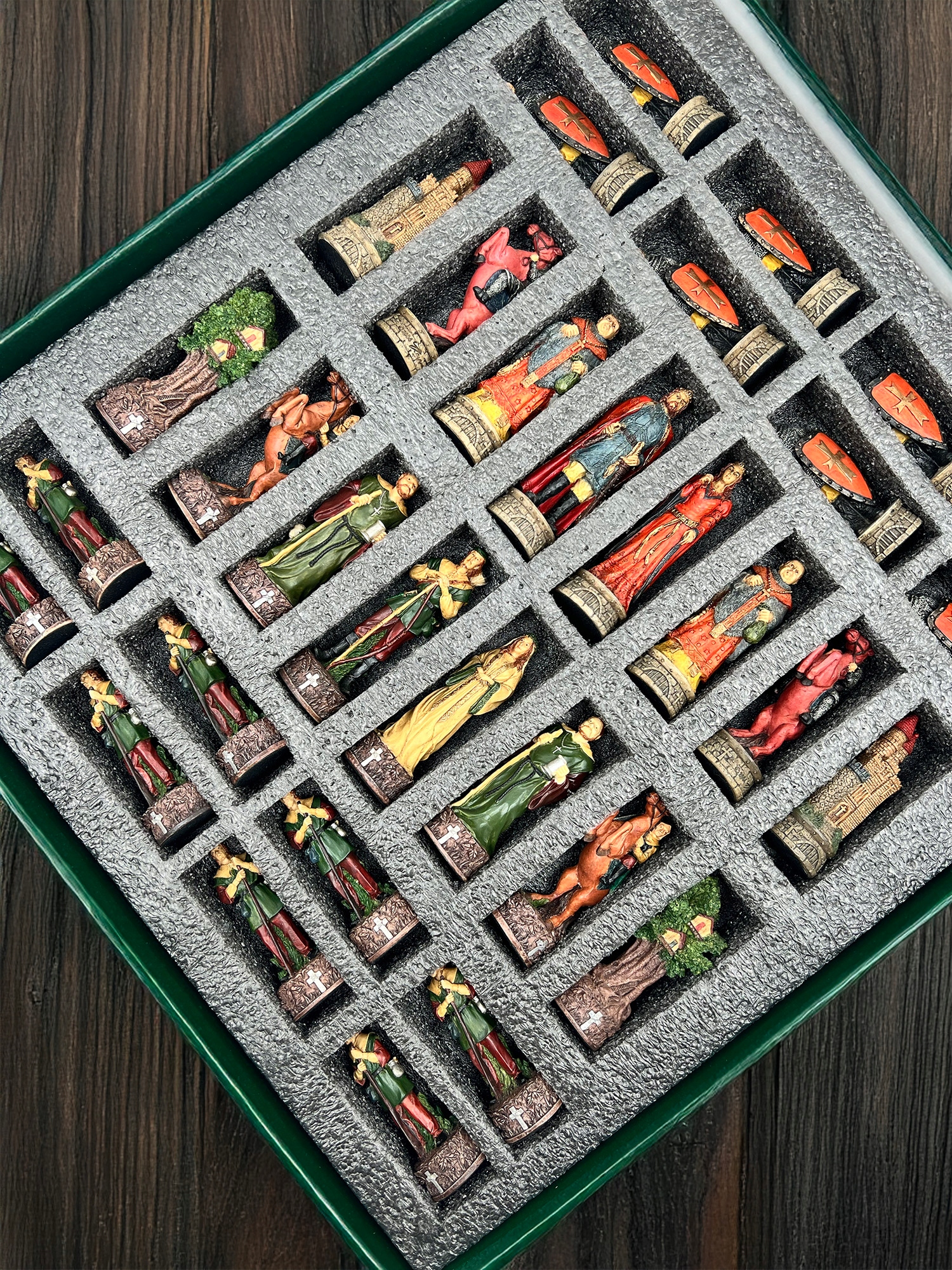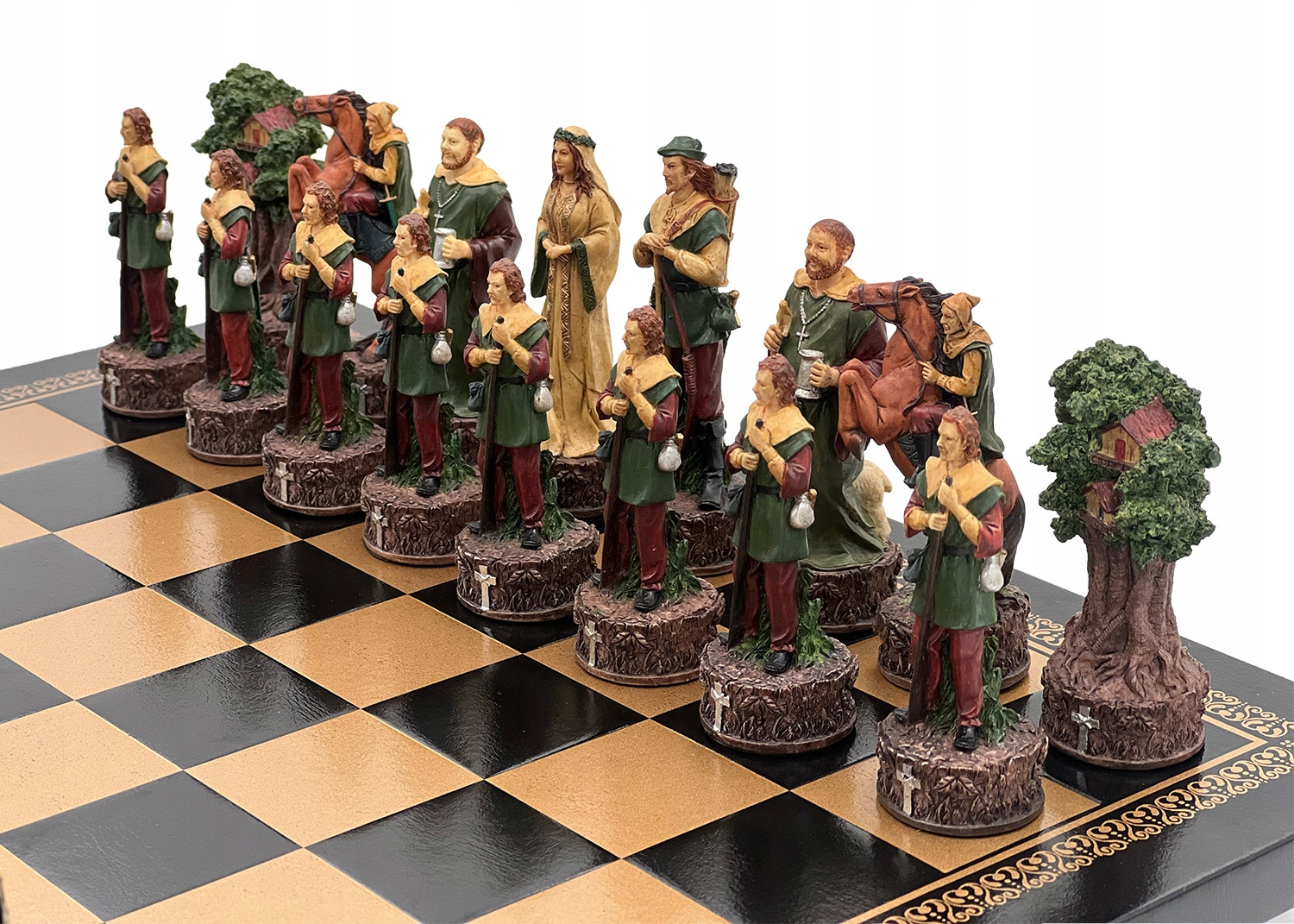 фігури з колекції "Robin Hood" виготовлені з поліірезин. Висота короля: 8 см, базовий діаметр: 2,5 см, вага: 24 г. Висота пішаків: 7 см, базовий діаметр: 2,5 см, вага: 20 г.