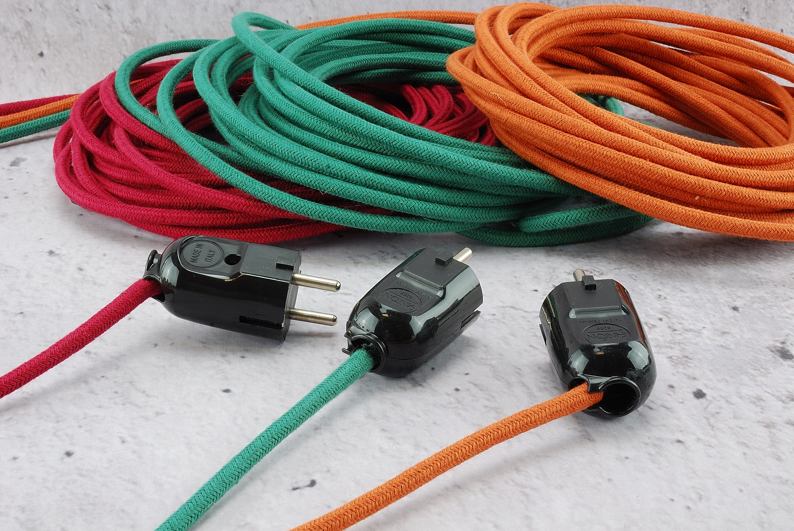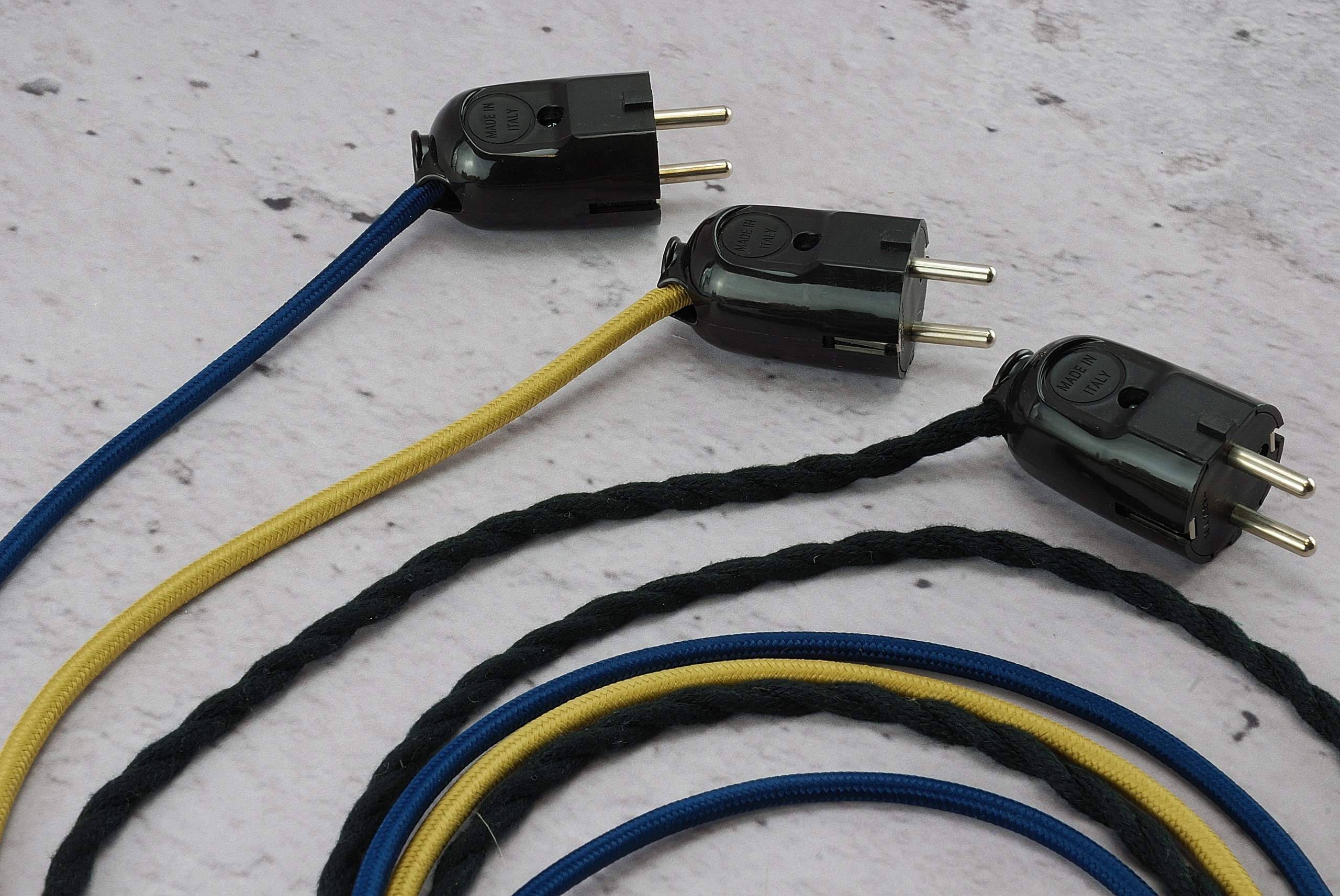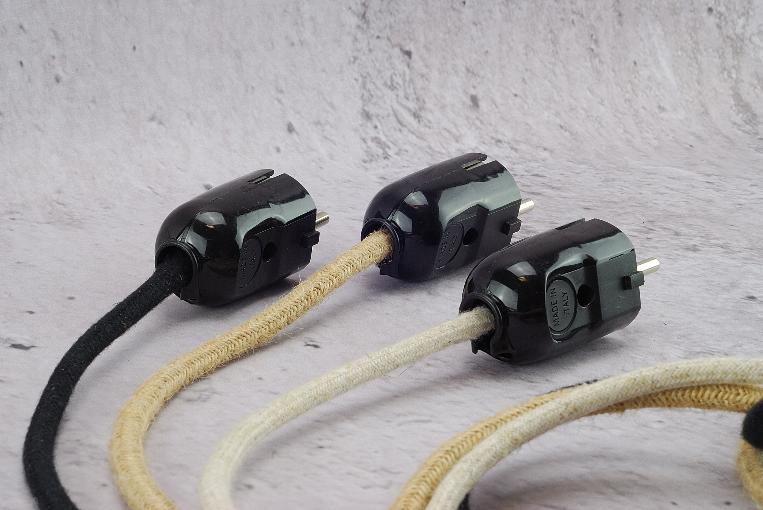 Італійська вилка 230В універсальна пряма і кутова LOFT для кабелю в ретро-оплітці
