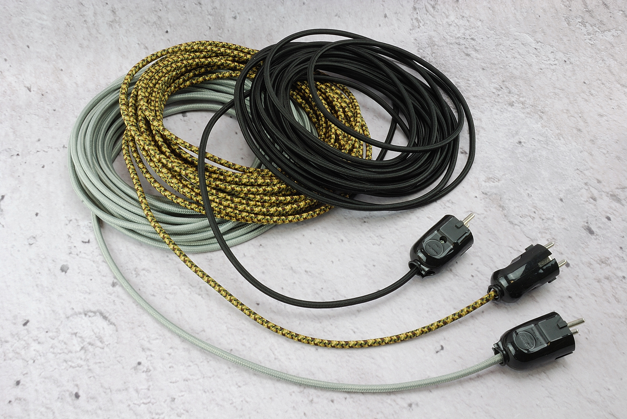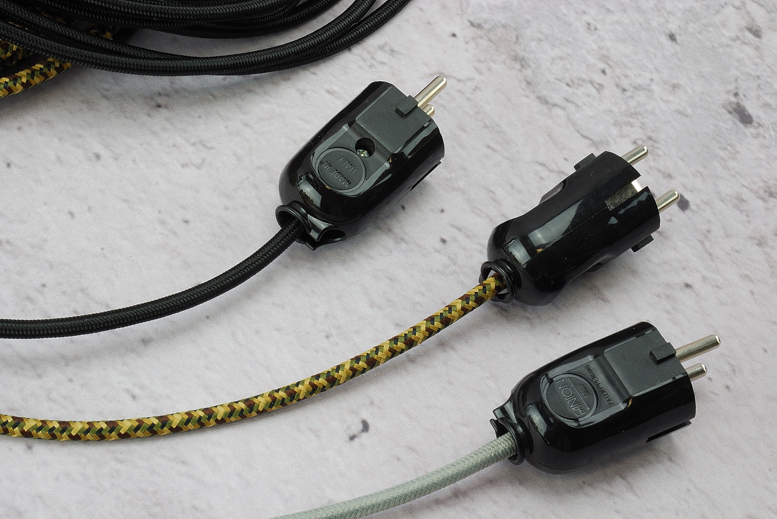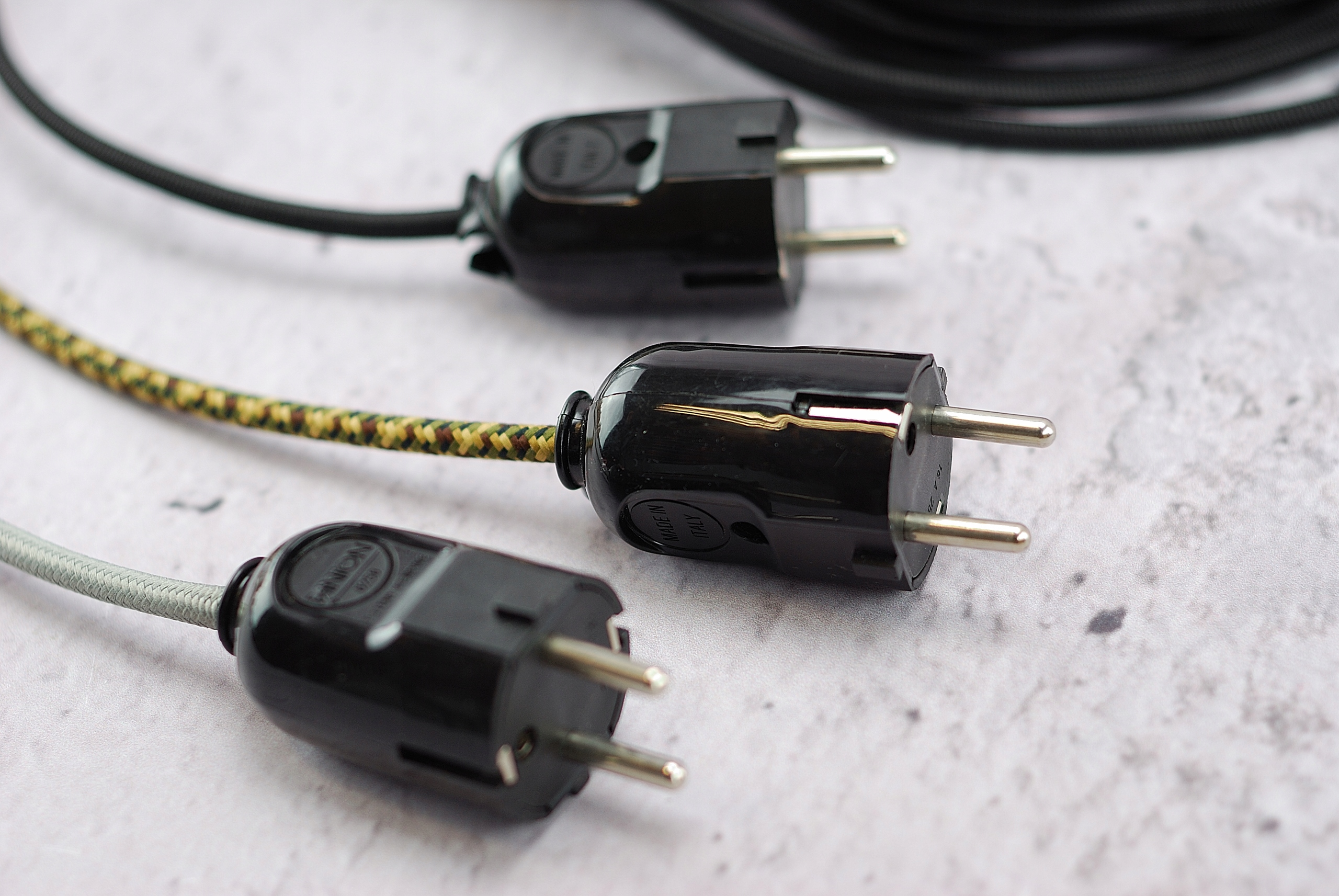 Італійська вилка 230В універсальна пряма і кутова LOFT для кабелю в ретро-оплітці