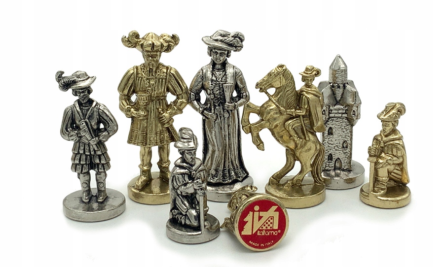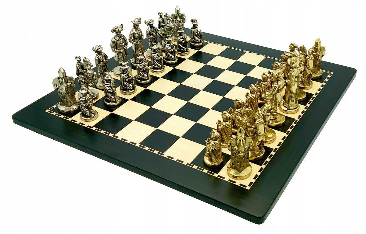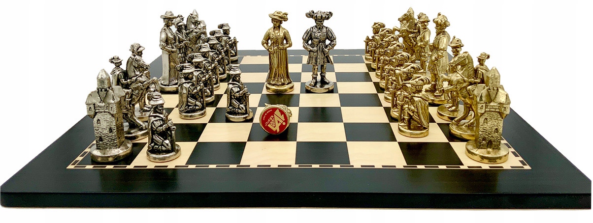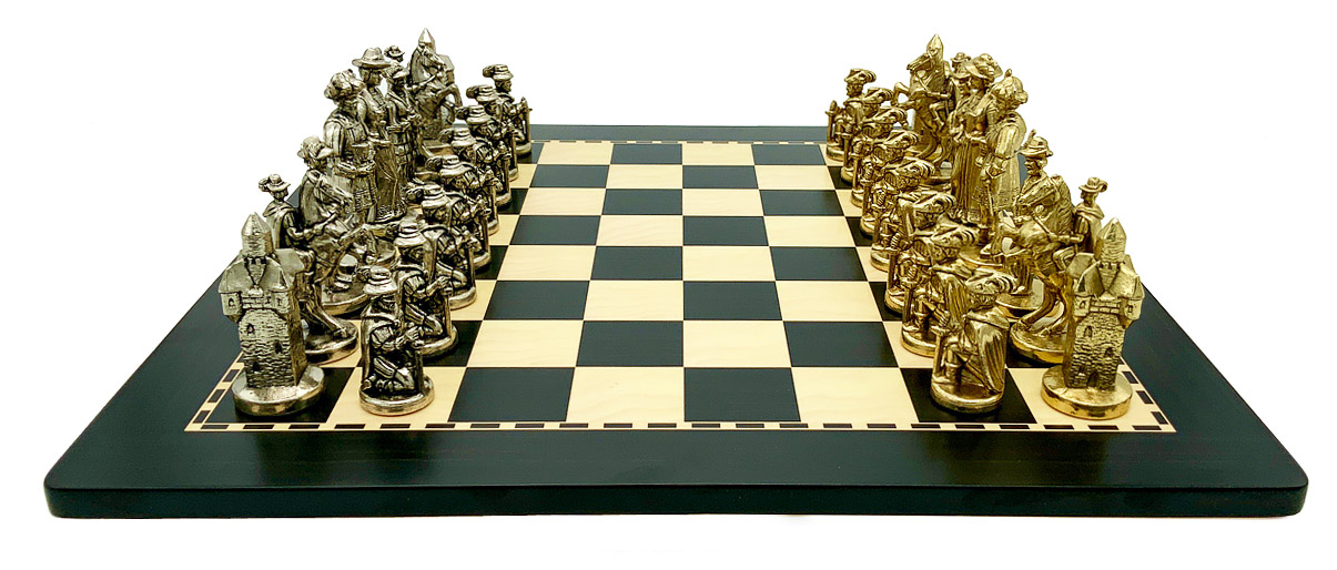Шахи світу -відомий італійський бренд Italfama. Шахова дошка з дерева. Розміри шахової дошки: 40 х 40 х 1,2 см, розміри поля: 4,0 см. Фігури з колекції "Lendsknecht", виготовленої з цинку, латуні та нікелю. Висота короля: 8,7 см - Ø База 3,1 см.