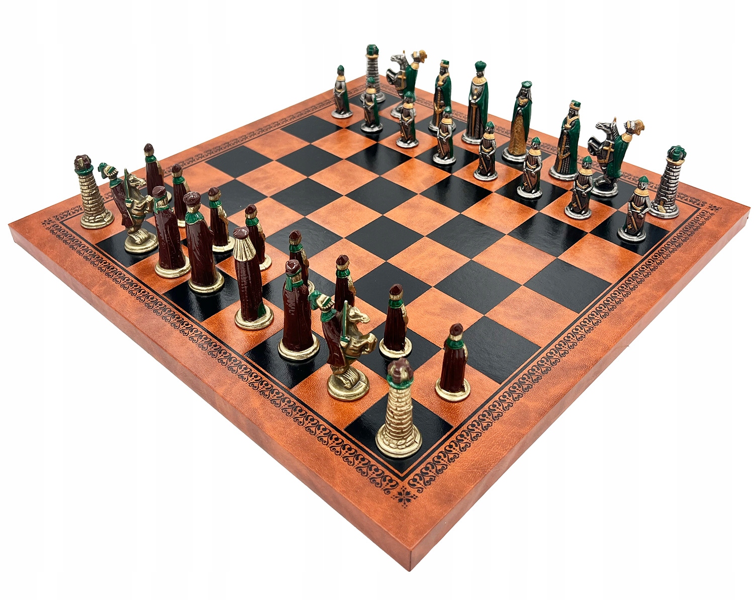 італійські шахові шматки середньовічні+ дошці -шкіряні коричневі/ чорні CM 33x33