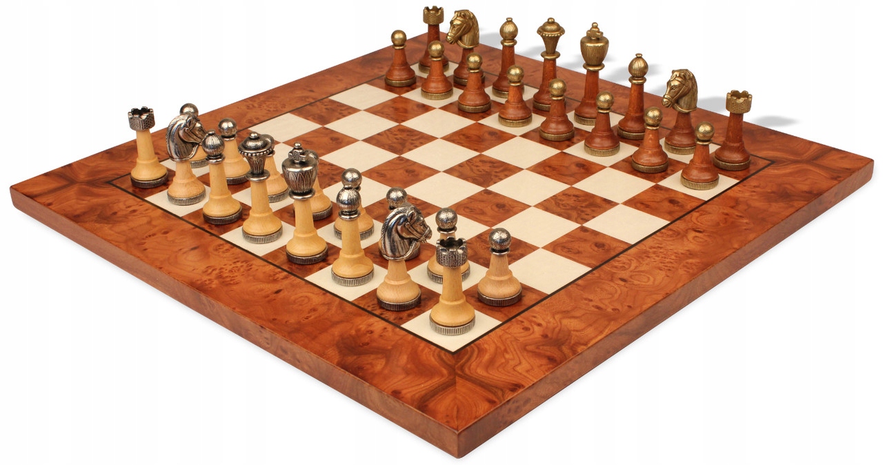 ІТАЛІЙСЬКІ ШАХИ CLASSIC METETAL/БУКОВІ HT + ШАХОВА ДОШКА В'ЯЗ БРІАР ДЕРЕВО 42