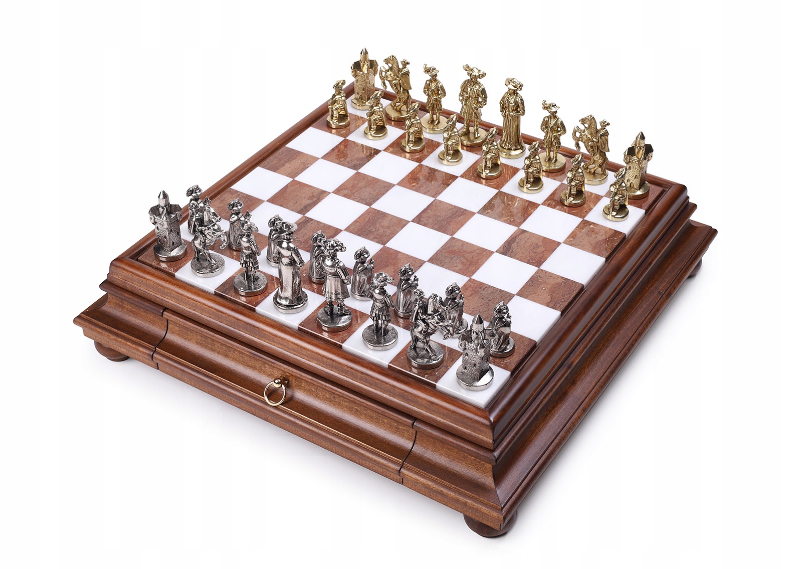 ITALIAN CHESS LANDSKNECHT+CHESS BOARD MARBLE/TILIA WOOD 46 WITH DRAWER