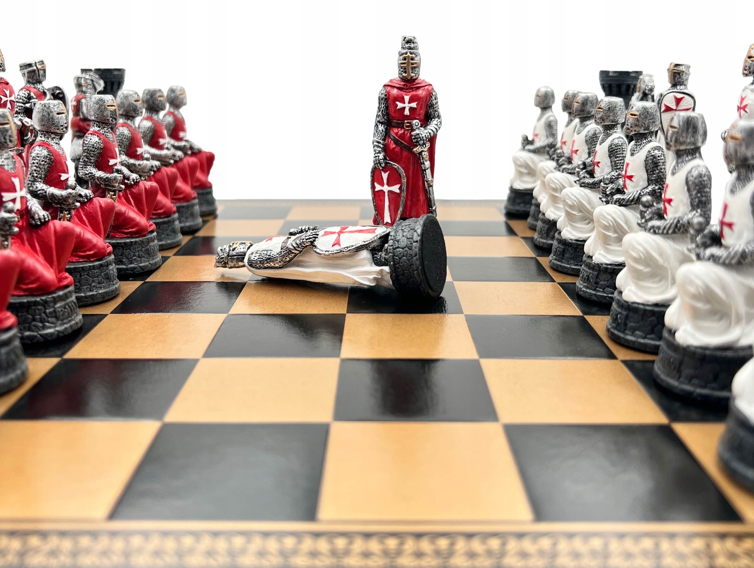 Італійські шахові фігури тамплієр + шахова дошка Золото/Чорний 33