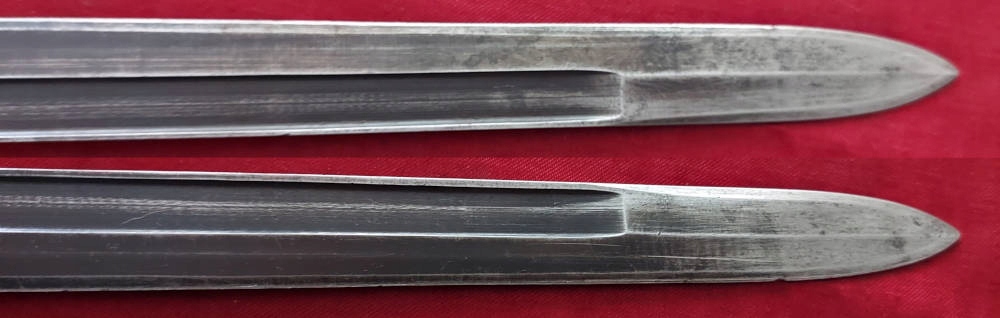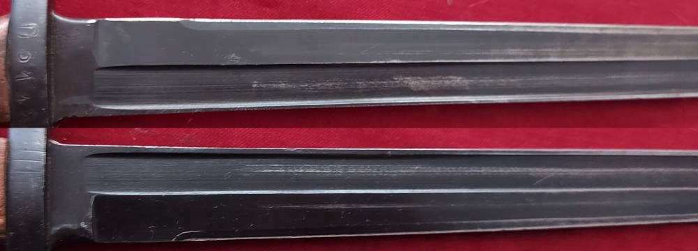 Копія, видна на фотографіях, дуже добре збережена. Лезо, заточування заводу, зберігається киснем, але його трохи зношено, головним чином на ручці. На JELC номер зброї D 6148 . Обшивка ручки - оригінальна дерев’яна. Замок Bayonet функціональний.