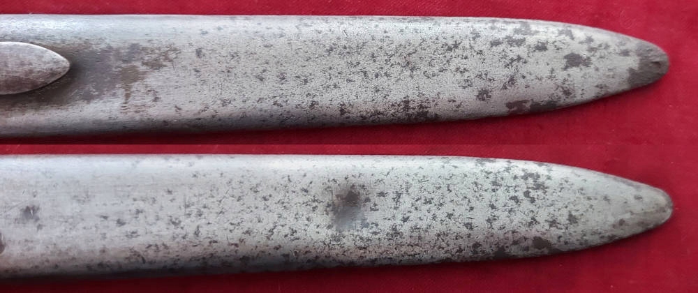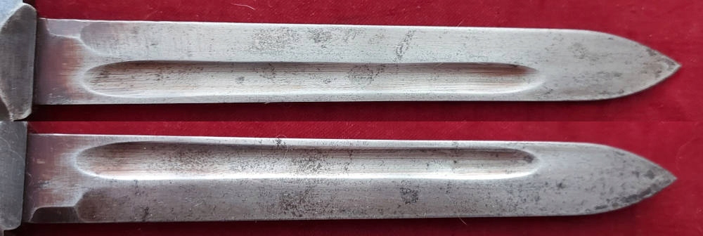 Копія, видна на фотографіях. Дуже добре збережено. Лезо, не торкалося. Обшивка ручки дерев’яна, оригінальна. Замок Bayonet функціональний. Ручка видно в гребінці, число d90185 c.gnutti .