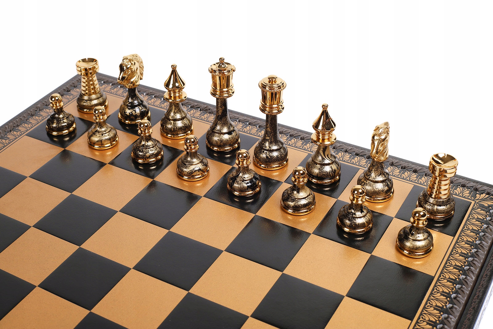 Відкрийте для себе клас та позачасовий стиль з унікальним italfama шаховим набором, в якому фігури з латунної та деревини вкриті 24-каратними золотими та срібними спробою 925 зустрічаються з елегантним великим шайком Eco-lather in golden-black golden-black. Це набір, створений для цінителів, колекціонерів та людей, які цінують справжню розкіш.