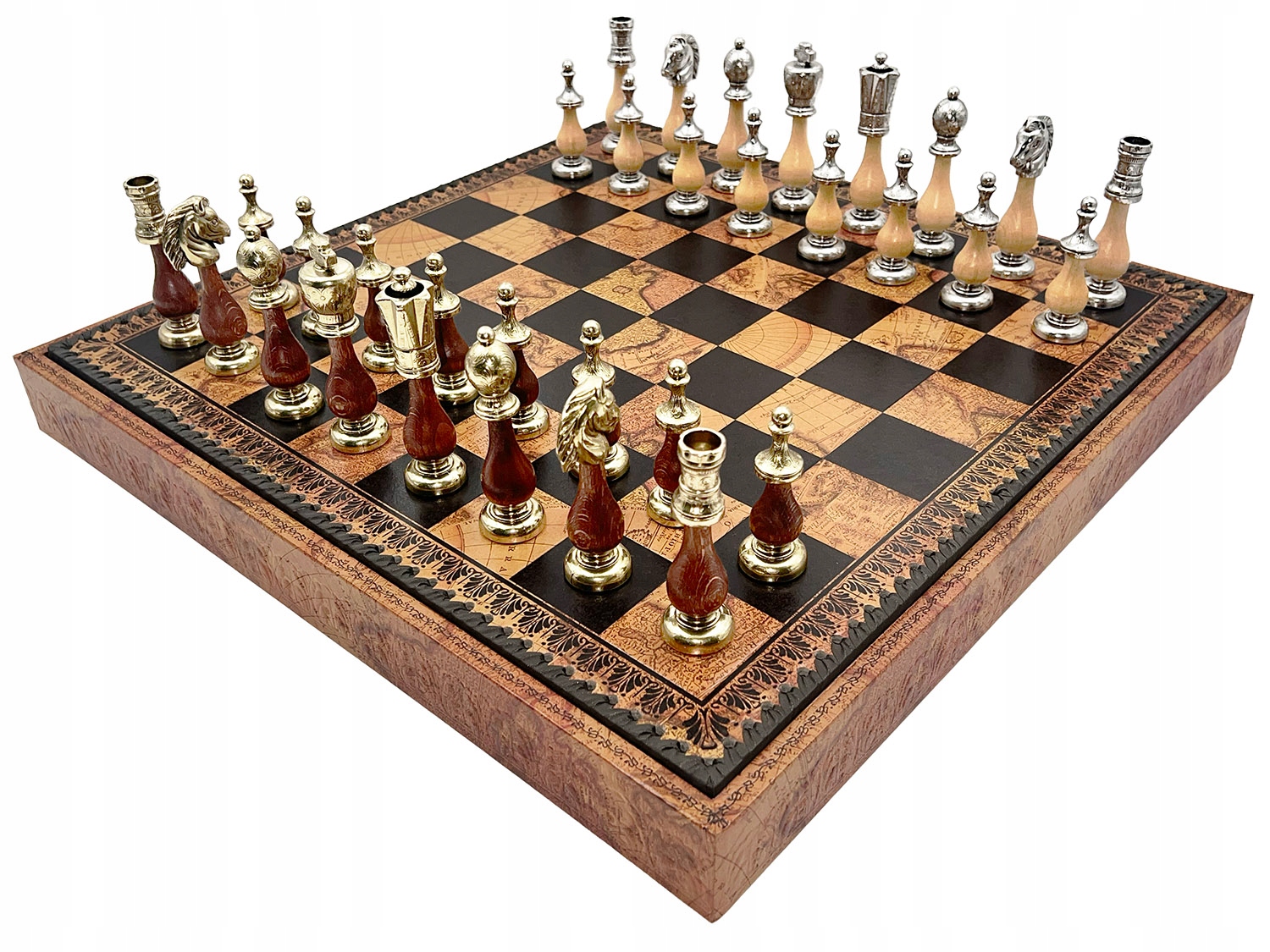 італійський шаховий набір italfama arabesque + шахова карта глобуса 48 см | Розкішний набір 3in1 з шашками та трибуналом