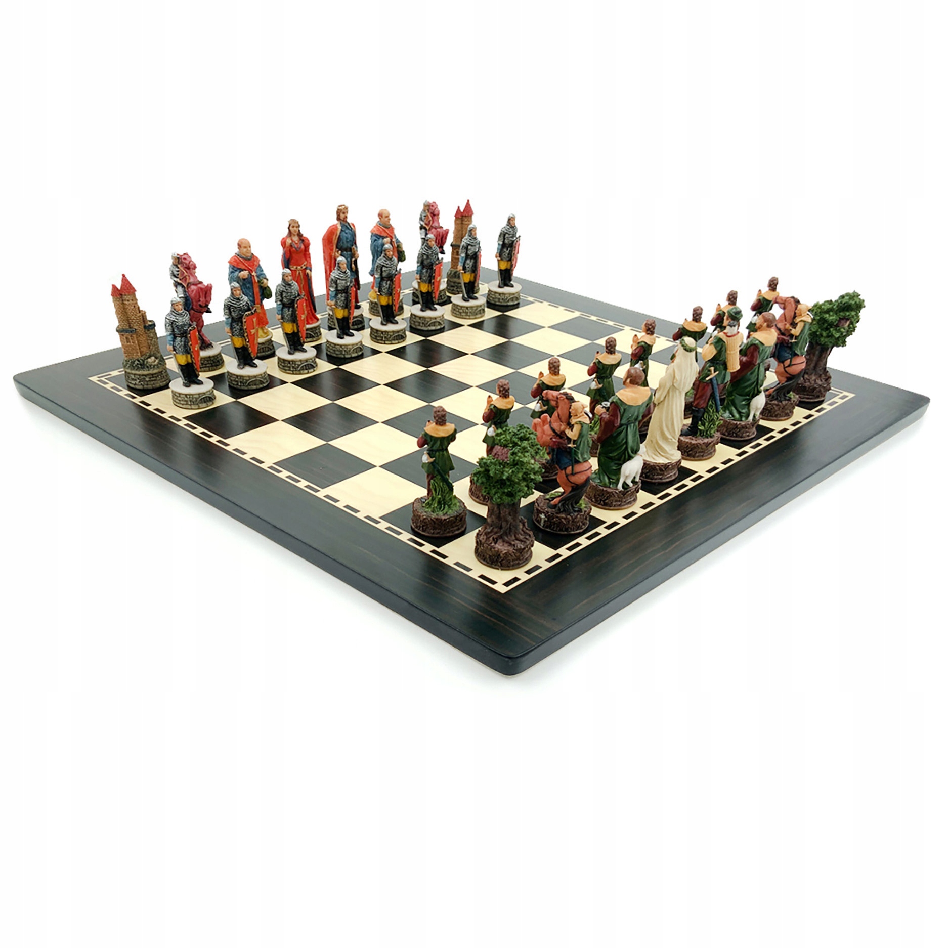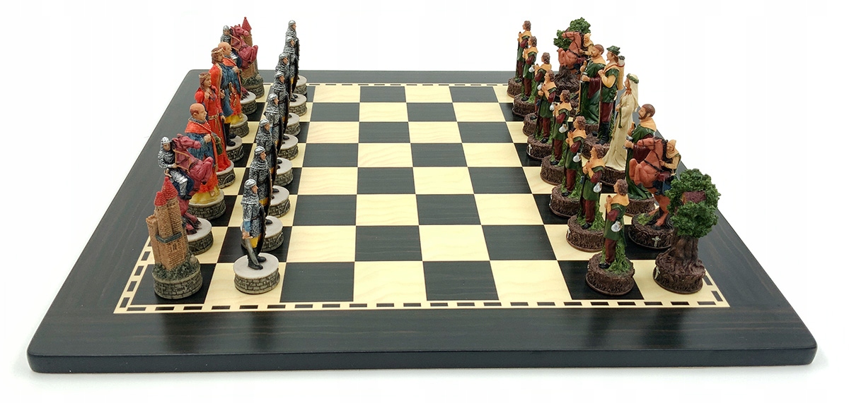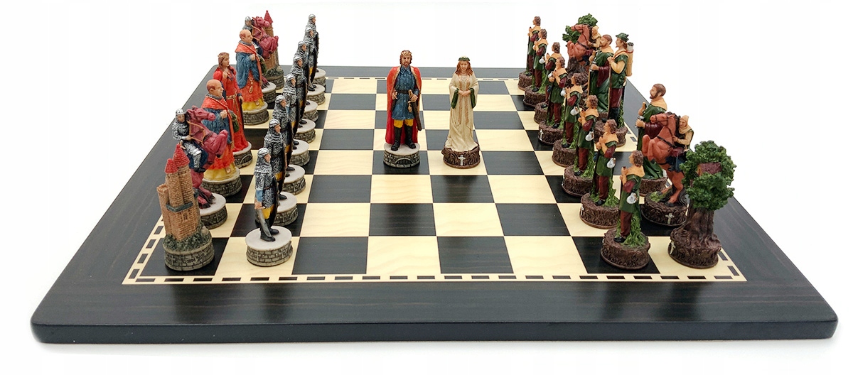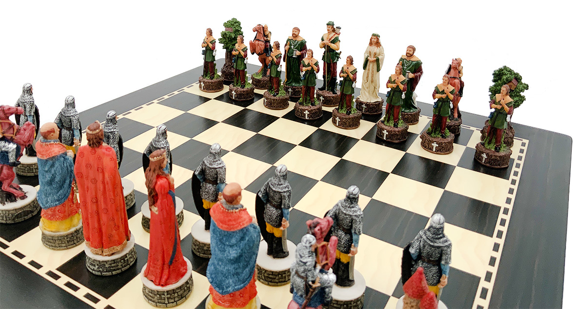 Романтично зображений у стилі «Ерола Флінна», король Робін Гуд у цьому наборі деталізовано з луком, сагайдаком і мечем. У нього також є кинджал, захований на поясі. Маріан стоїть поруч із ним у довгій білій сукні, а суворий король Джон спостерігає за ними. Єпископом є брат Так, жартівливо зображений з палицею, кухлем пива в руці та ягням біля ніг. Ролі коней і пішаків грають Весела компанія і охорона замку. Вежі елегантно представлені у вигляді дерев із захованими всередині маленькими будиночками або у вигляді величних замків короля Джона. Кожна фігура – витвір мистецтва.