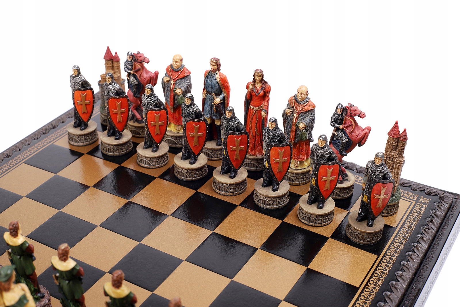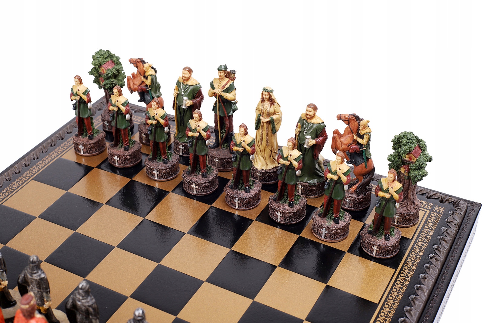 ІТАЛІЙСЬКИЙ НАБІР ШАХОВИХ ФІГУР СМОЛА РОБІН ГУД + ЗОЛОТА/ЧОРНА ШАХІВНА ДОШКА