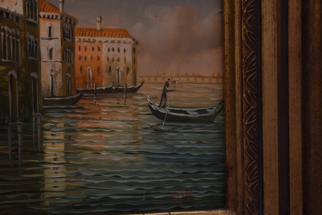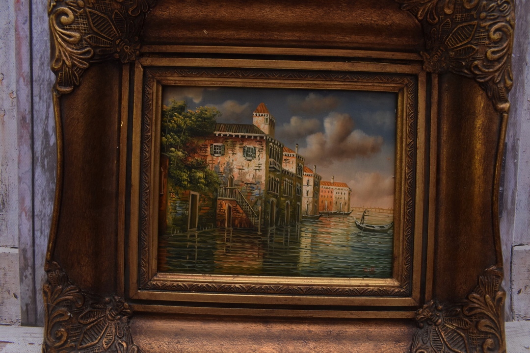 Італійський пейзаж - Венеція - Італія - Картина маслом - чорно-золота рамка