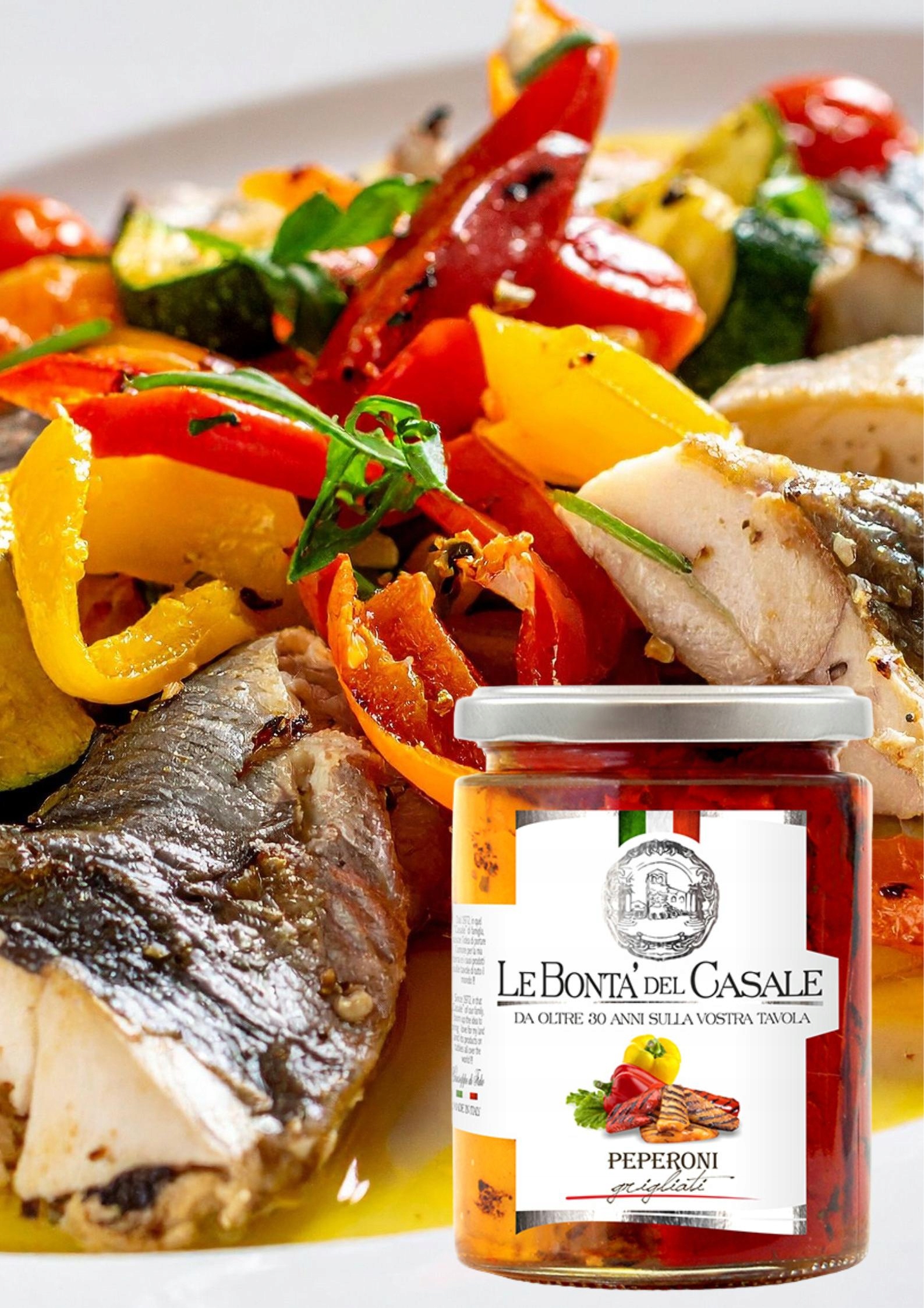 Смажений на грилі перець Dispac — один із найхарактерніших овочів італійської кухні, приготований з особливою дбайливістю та повагою до продукту. Відбирають лише найкращі, стиглі перці, які після миття та очищення кладуть на гриль, де вогонь і висока температура надають йому інтенсивного аромату, м’якості та тонкого копченого смаку.