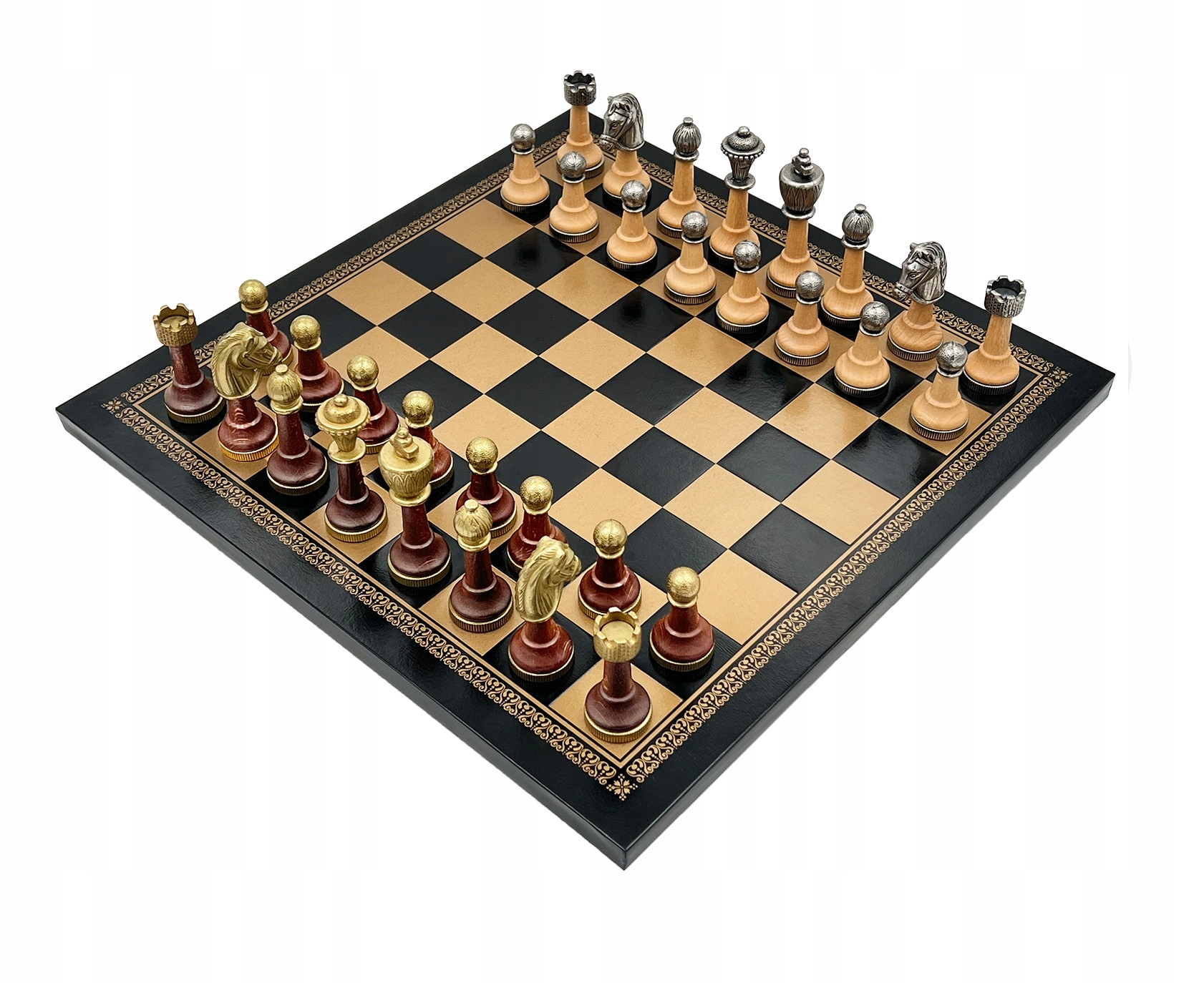 Італійський шаховий набір металевий/дерево + шаховий шкіряний золото/чорний 33