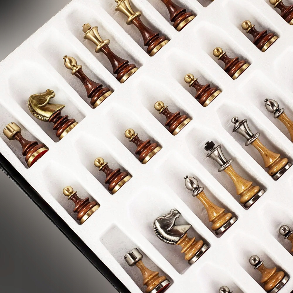 Італійський шаховий стіл + італійські шахові шматки латунь/букове дерево стюнтон