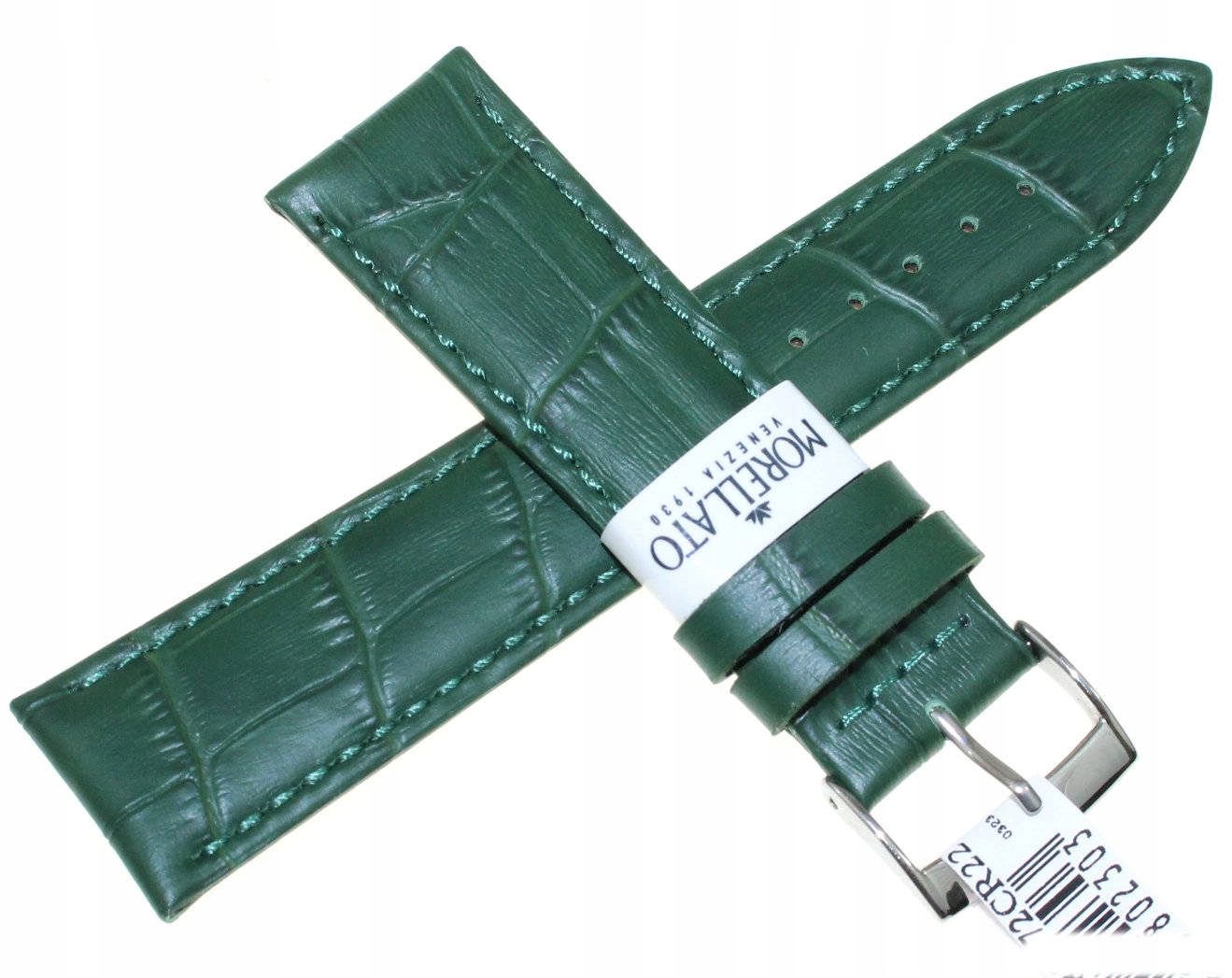 Зелений шкіряний матовий ремінець із звуженими швами для годинника MORELLATO Bolle 1930. Прошивка в колір ремінця. Ширина 22 мм. Антиалергічна пряжка. Ремінець підходить для всіх годинників зі стандартним кріпленням шириною 22 мм. Безкоштовні телескопи