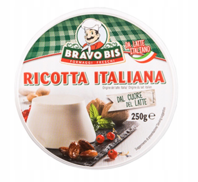 Ricotta - це традиційний італійський м'який сир, виготовлений із підігрітої сироватки, іноді збагаченої молоком. Має білосніжний колір, злегка зернисту, вологу консистенцію і злегка солодкуватий молочний смак. Він легкий, натуральний і багатий сироватковим протеїном.