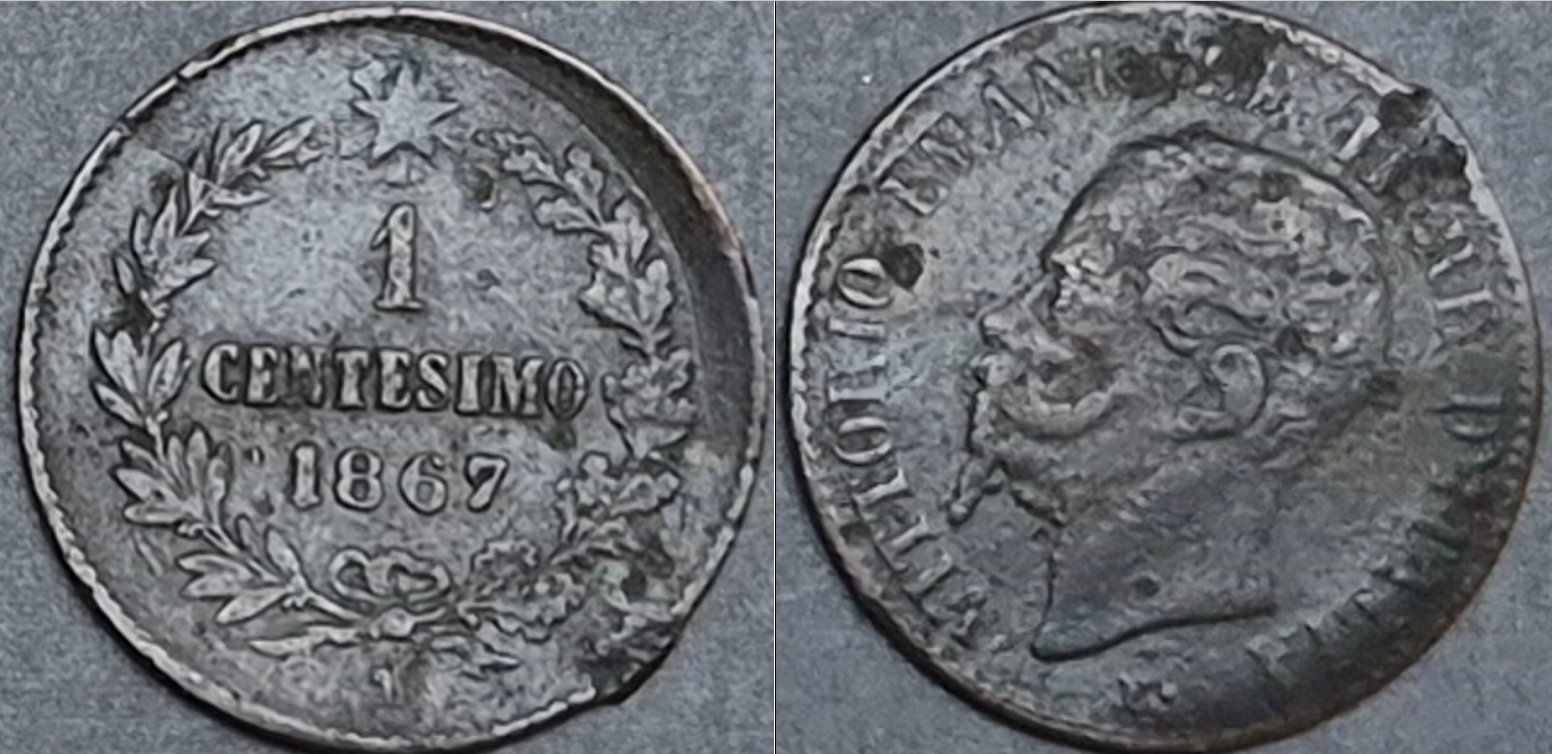 Італія 1 центезимо 1867 Віктор Еммануїл II лит. M
