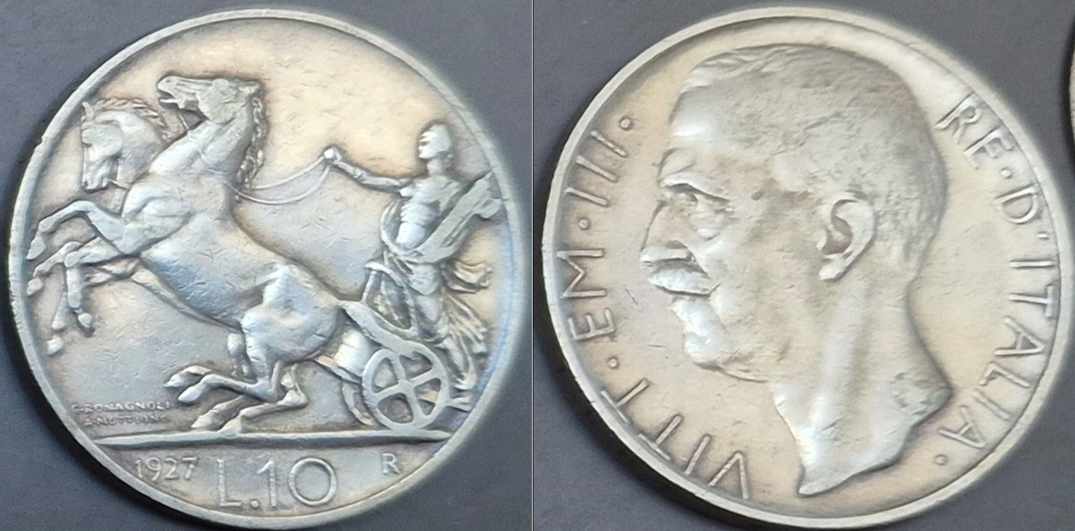 Італія 10 лір 1927 року — срібло 10 грамів