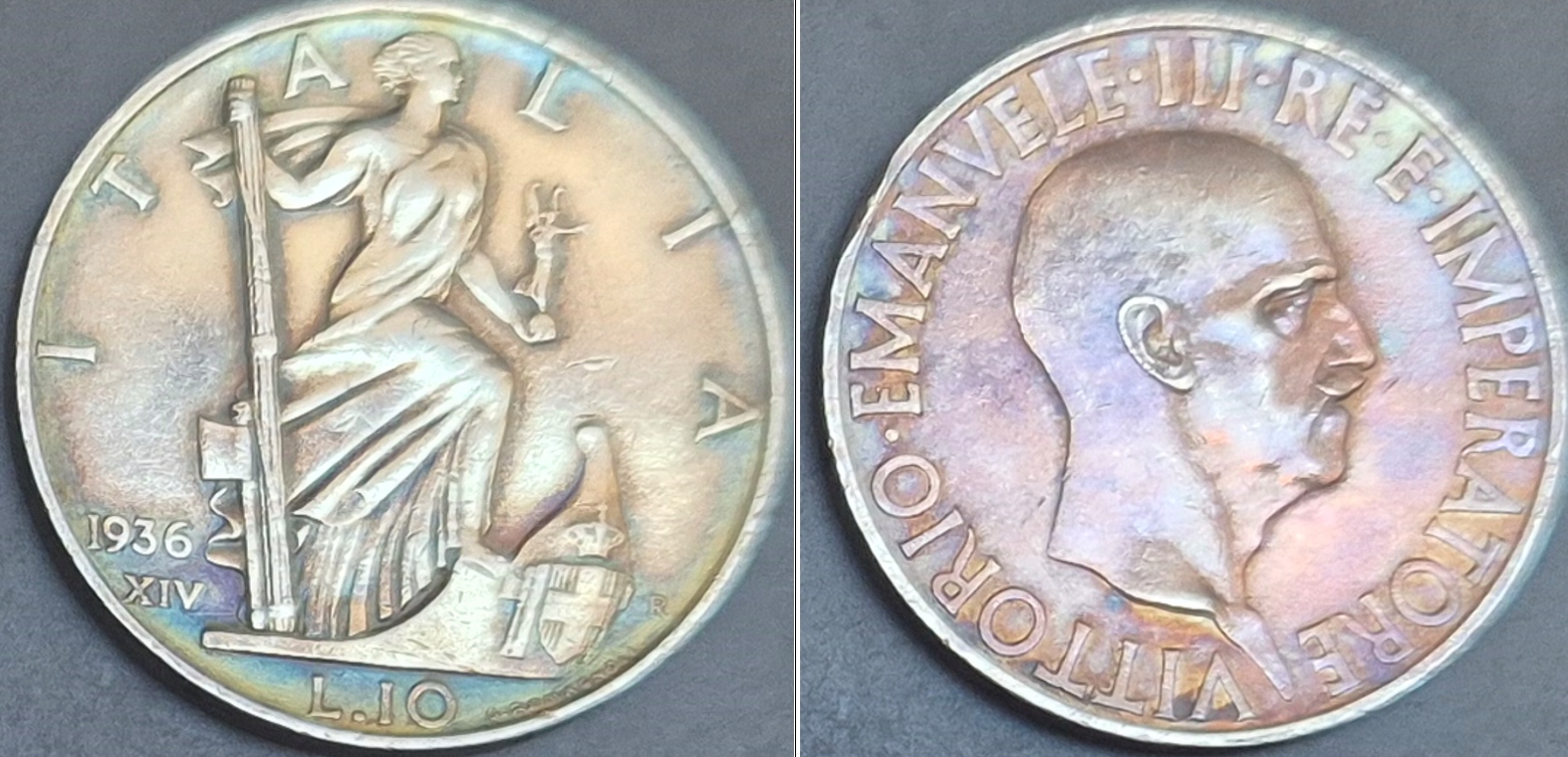 Італія 10 лір 1936 року — срібло 10 грамів