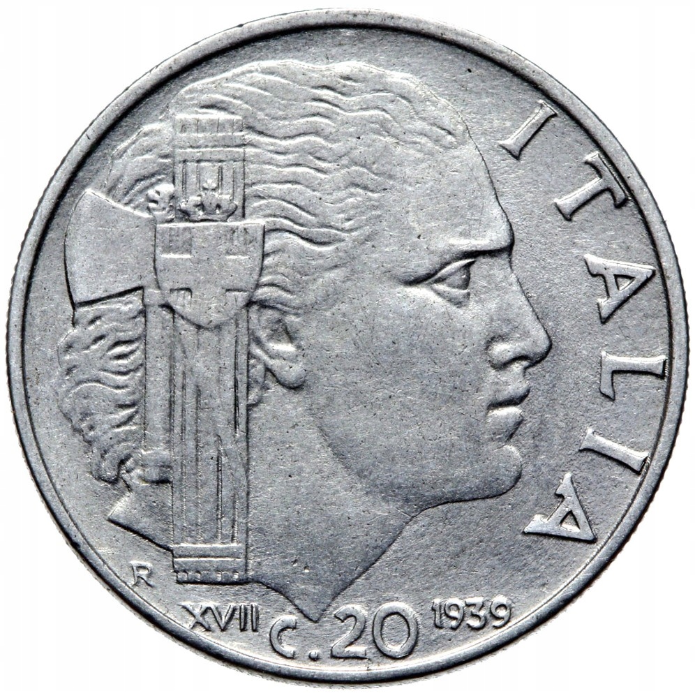 Монета - Італія - Віктор Еммануїл III - 20 Centesimi 1939 - 17-й рік - МАГНІТ.