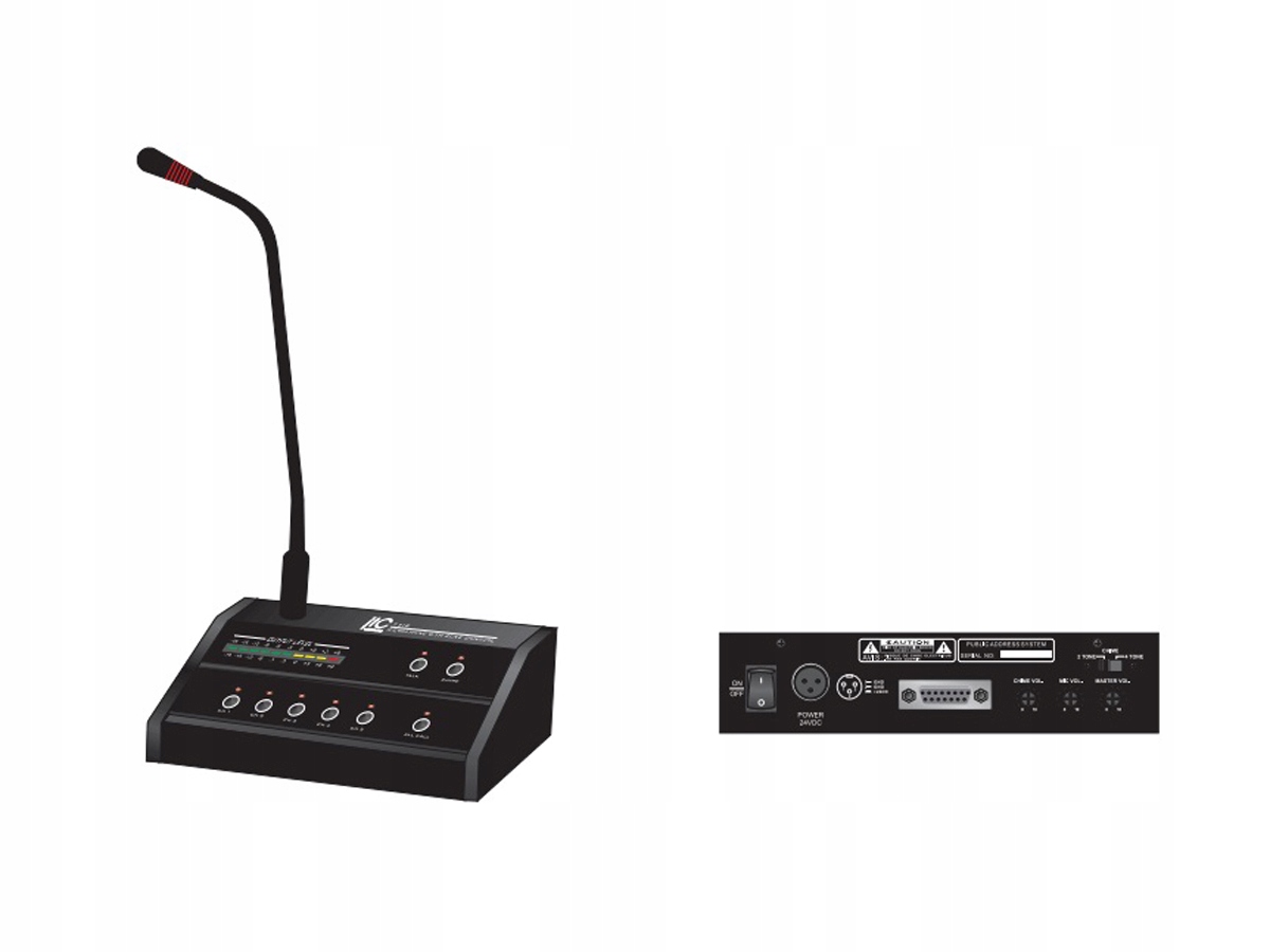 Мікрофон має високий клас вставку мікрофона ємнісний тип o (електричний) з до характеристик. Використовується "гусяча шия" дає користувачеві можливість знайти вставку мікрофона в будь -якому місці. Обкладинка настільних комп'ютерів виготовлена з хорошої якості ABS у чорному кольорі. Ядро мікрофона підключено до підставки для за допомогою розетки XLR . Регулювання Посилення мови , Гонг Сигнал та сума вихідних сигналів з робочого столу. віддалене постачання від підсилювача.