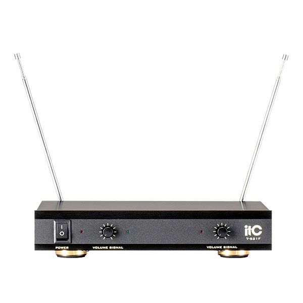 Набір бездротового мікрофона T-521F, що працює в діапазоні VHF. Набір складається з базового блоку та двох ручних передавачів - в комплекті. Діапазон дії - УКХ. У комплекті є окремий регулятор гучності для кожного мікрофона. Кварцова стабілізація частоти в діапазоні 210 - 260 МГц.