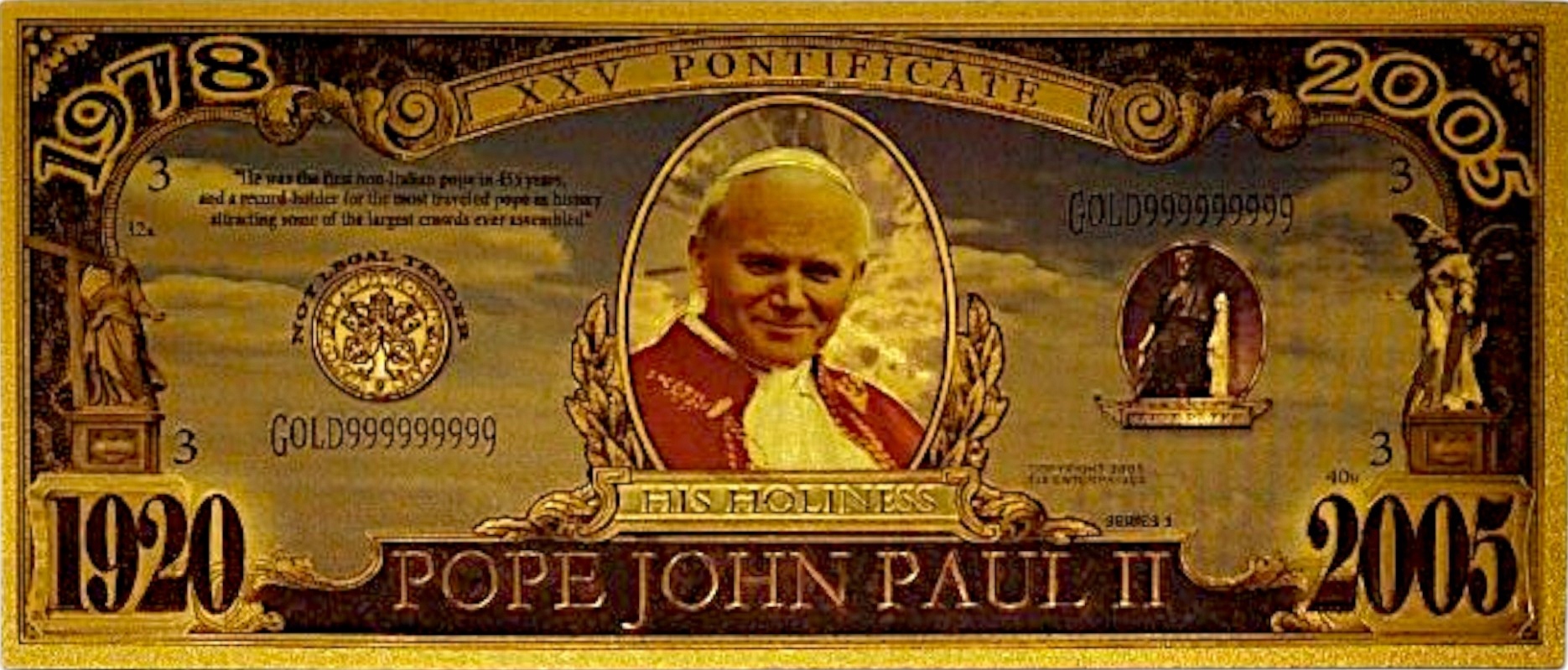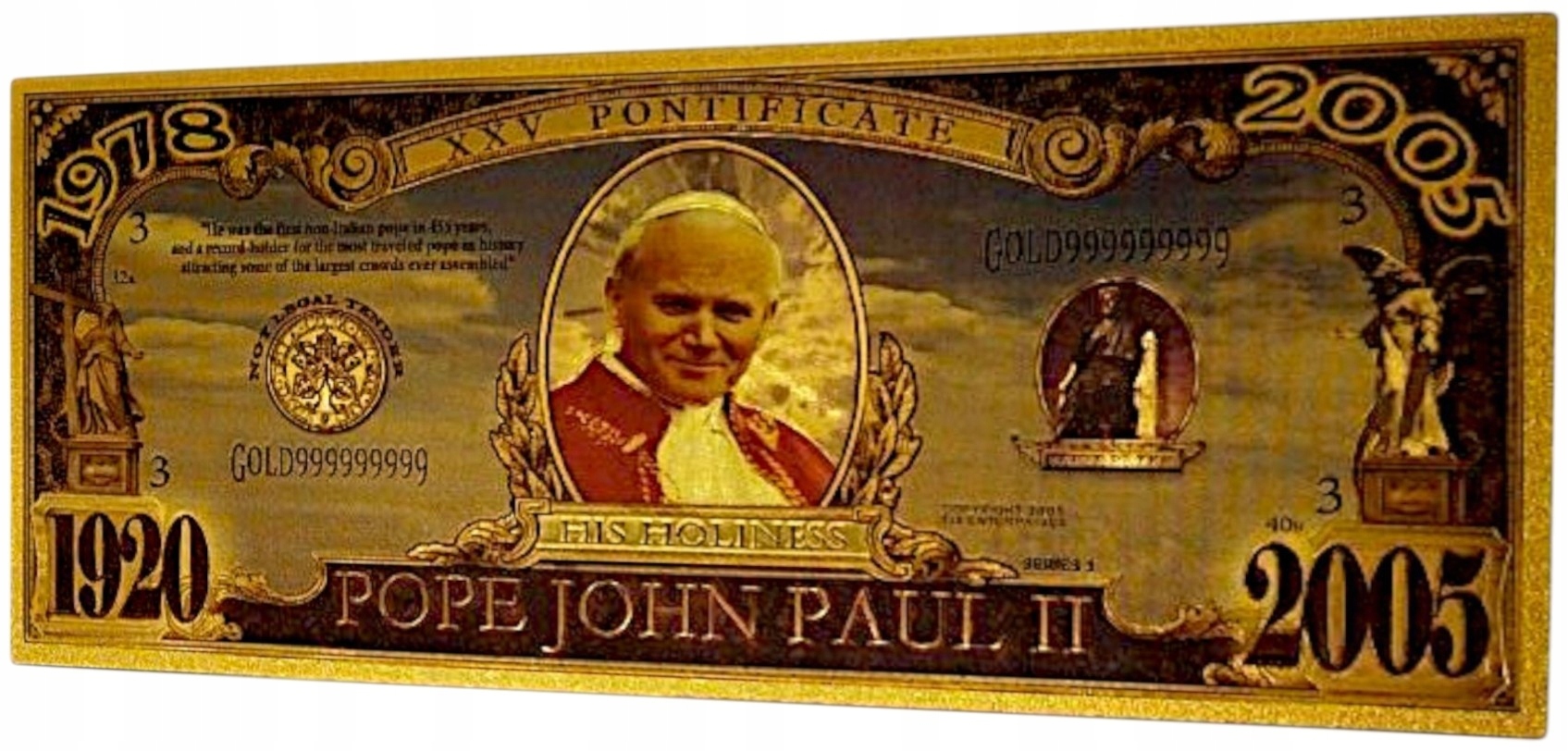 ⭐Незвичайна колекційна банкнота була створена як данина святому Йоану Павлу ІІ – Папі Римському, понтифікат якого (1978–2005) назавжди змінив історію Церкви та світу.