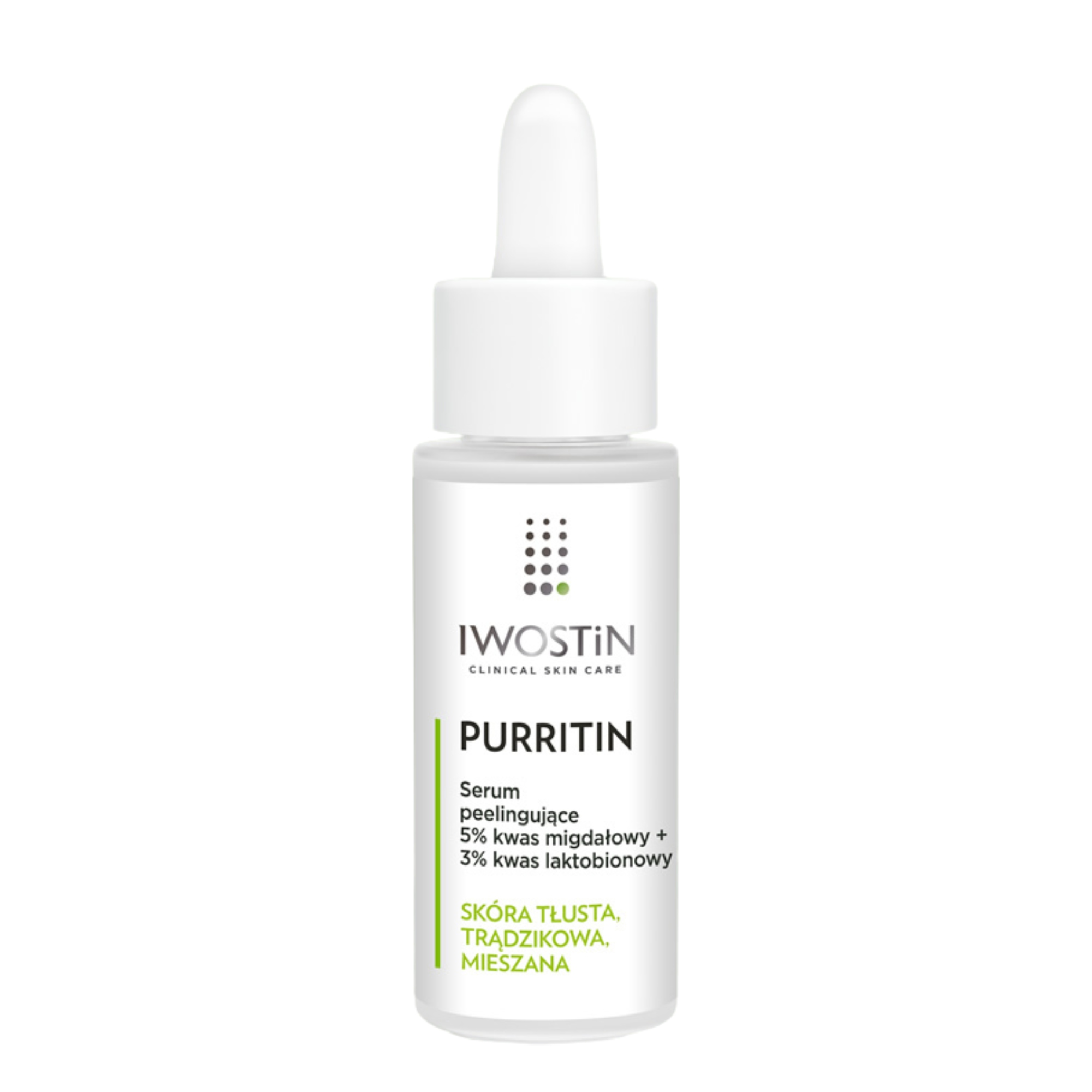 Знайомтеся з Iwostin Purritin Peeling Serum з 5% мигдальною кислотою, призначеною для догляду за акне та жирною шкірою. Мигдальна кислота, що міститься в продукті, відлущує мертву шкіру та помітно розгладжує її, надаючи обличчю сяйва.