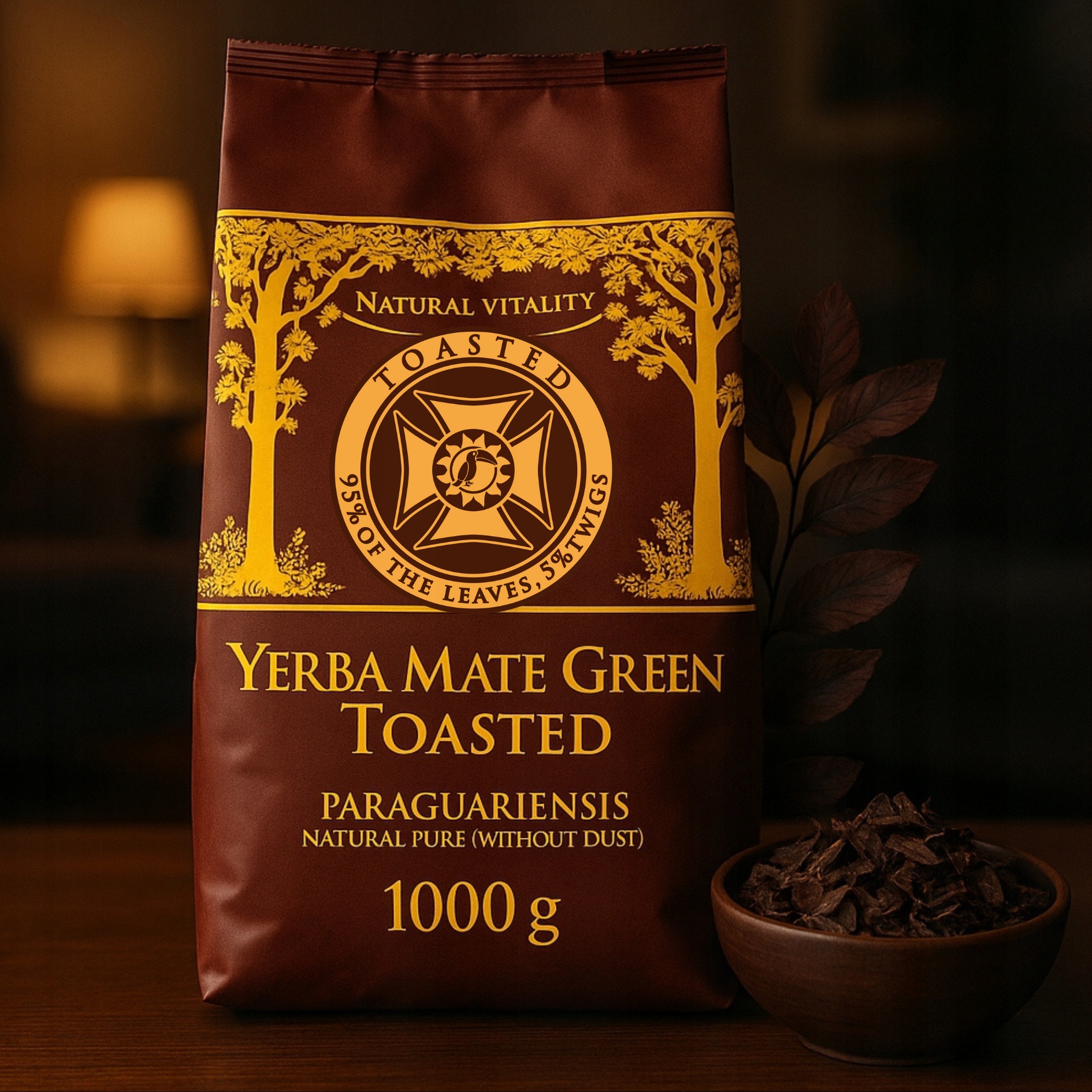 Yerba Mate Green Toasted — це надзвичайна пропозиція для всіх любителів настоянок із глибоким унікальним смаком. Цей смажений сорт бразильського мате походить з плантацій, розташованих у мальовничому штаті Парана, де йерба дозріває в ніжній тіні тропічних дерев. Завдяки цьому листя набуває виняткової міцності та аромату, а процес легкого обсмажування надає їм характерний шоколадно-горіховий відтінок.