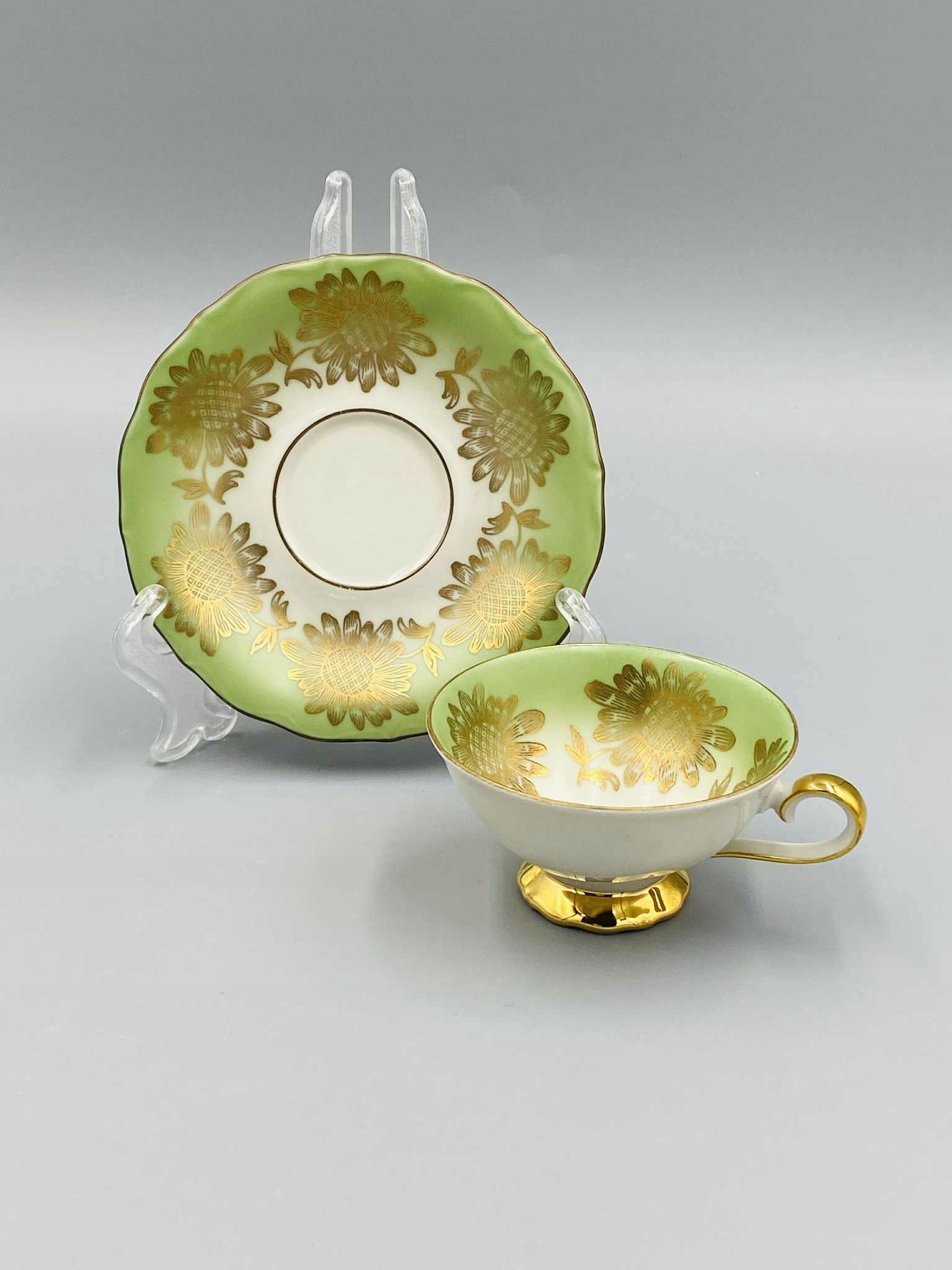Білий порцеляновий у витонченому, м'ятному золотистому кольорі. Ручні позолочені верхні краї, ручка та ноги. Рекомендую.
