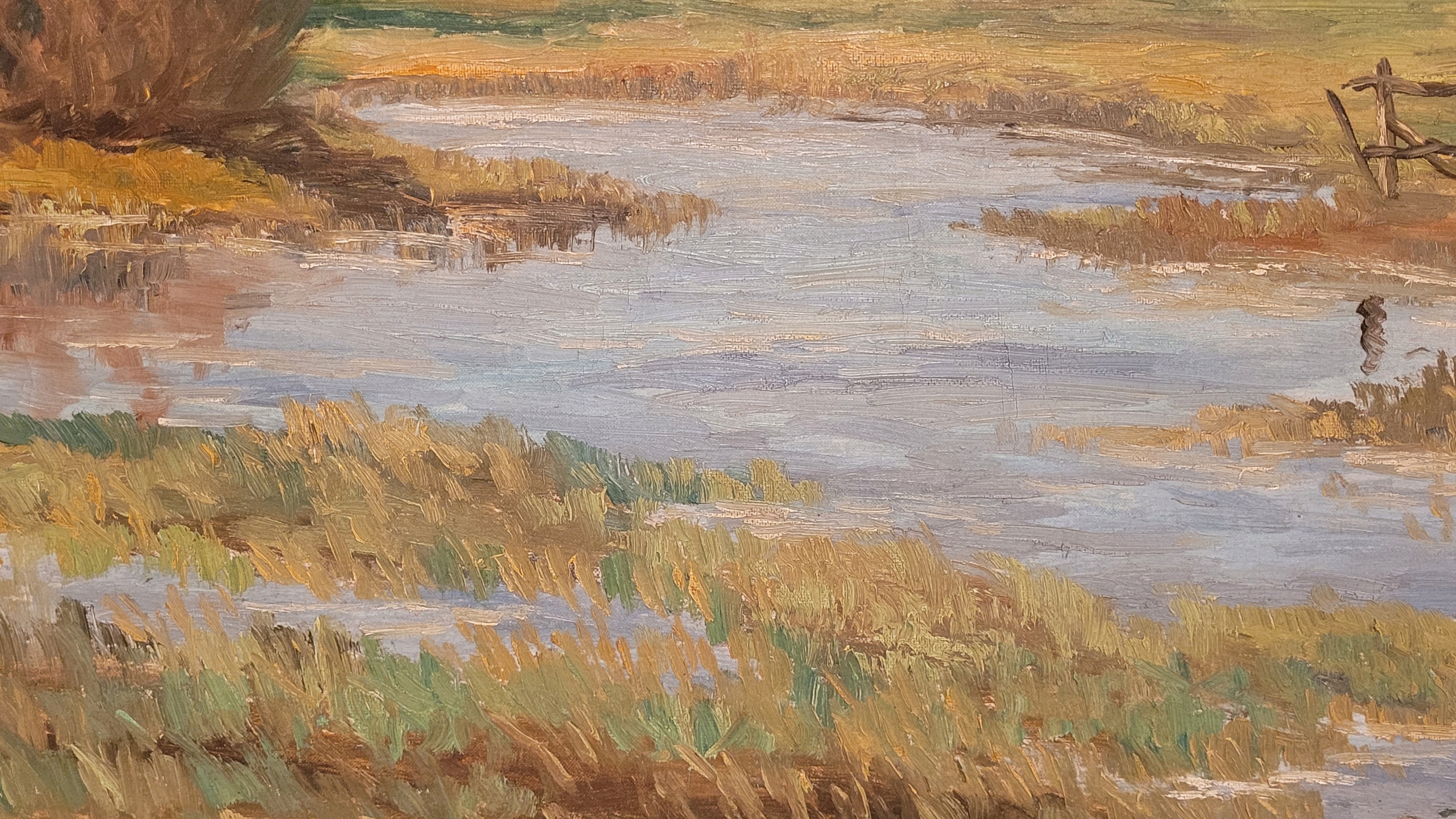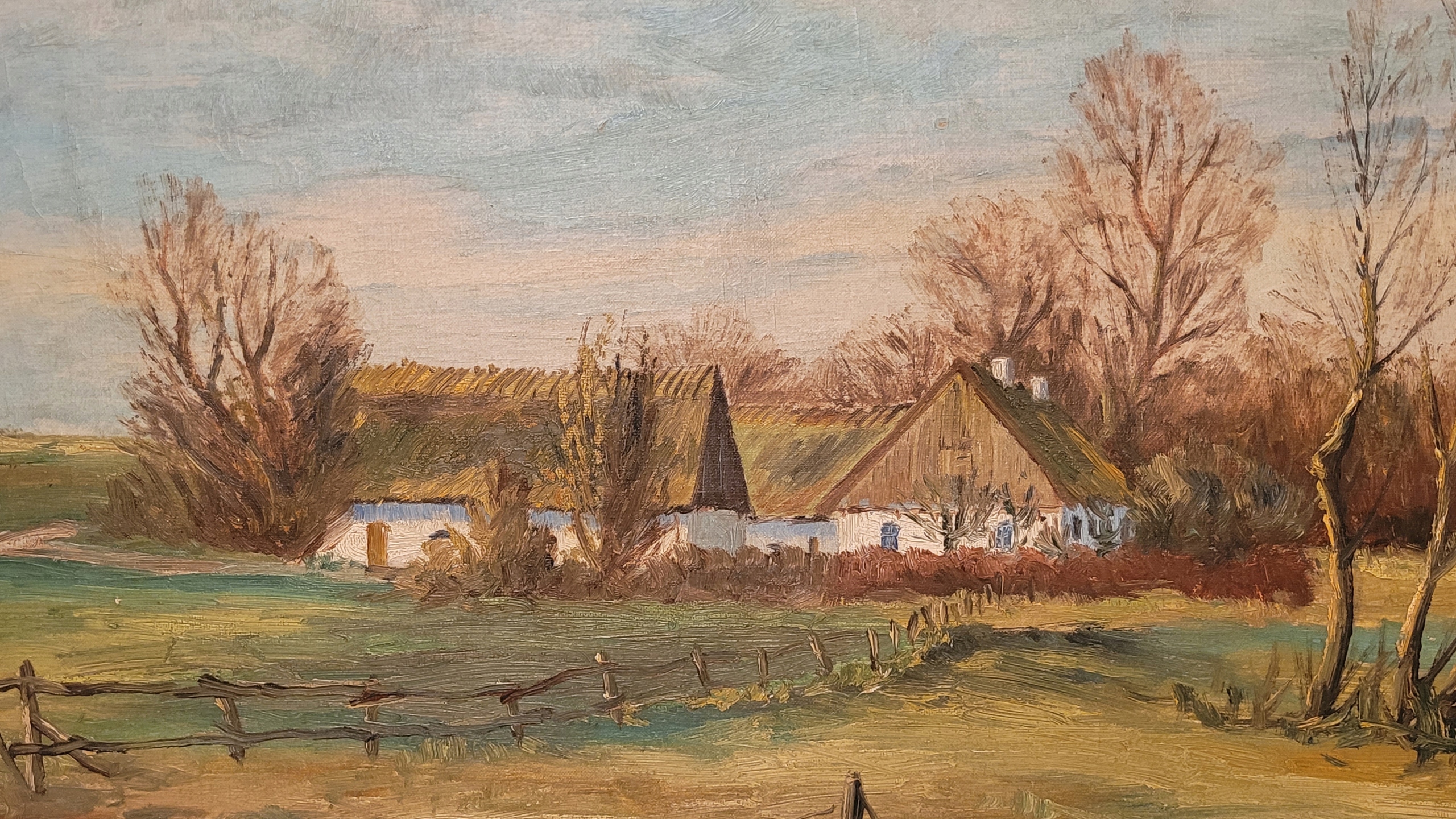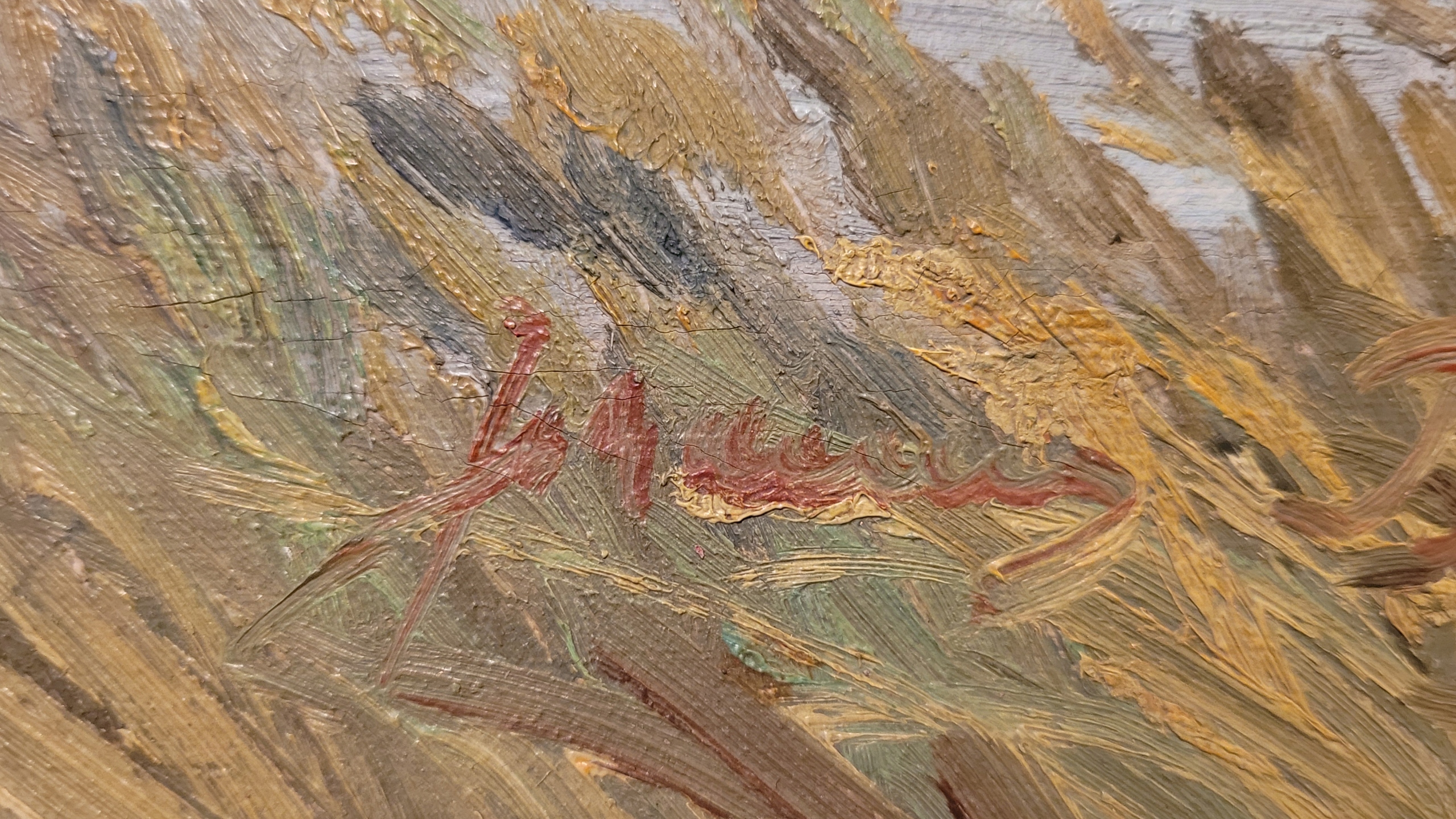 ЙОГАННЕС ПЕТЕРСЕН - «СІЛЬСЬКИЙ ПЕЙЗАЖ З МЕРЕДОВИЩЕМ», стара картина маслом.