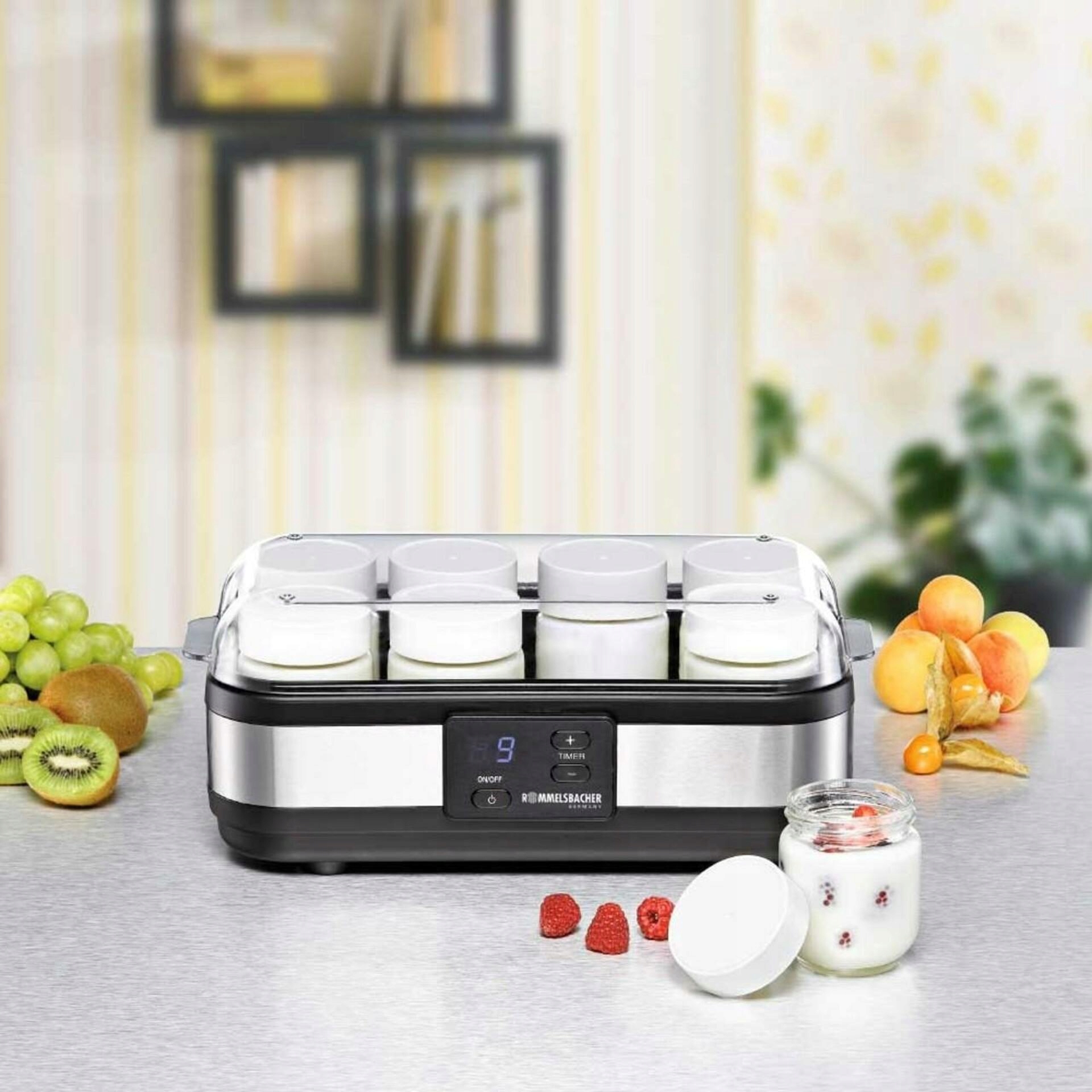 Технічні дані Кольорова нержавіюча сталь/чорна конструкція Гарантія 24 місяці Вага 2,12 кг Розміри (В х Ш х В) 13,5 х 34,5 х 18,5 см Електроенергія 40 Вт Приготуйте, мабуть, найпопулярнішу «закуску» самостійно! Домашній натуральний йогурт без невідомих і небажаних добавок - це натуральна і легкозасвоювана їжа, регулярне вживання якої приносить користь вашому здоров'ю. За допомогою йогуртниці Rommelsbacher можна приготувати до 1200 г натурального йогурту, який можна зберігати в холодильнику не менше 1 тижня. Домашній йогурт пропонує багато солодких і ситних варіантів, а інгредієнти можна вибирати індивідуально. Крім того, здорова кухня повинна включати запас натурального йогурту як основи для подальшого використання (для тортів, соусів, десертів тощо). Пристрій простий у використанні, його легко чистити, а завдяки елегантному квадратному дизайну він економить простір - без штучних ароматизаторів і консервантів для приготування до 1200 г натурального йогурту порції.Просте управління за допомогою кнопок.Автоматичне вимкнення,регулювання температури,прозора кришка , з кришкою